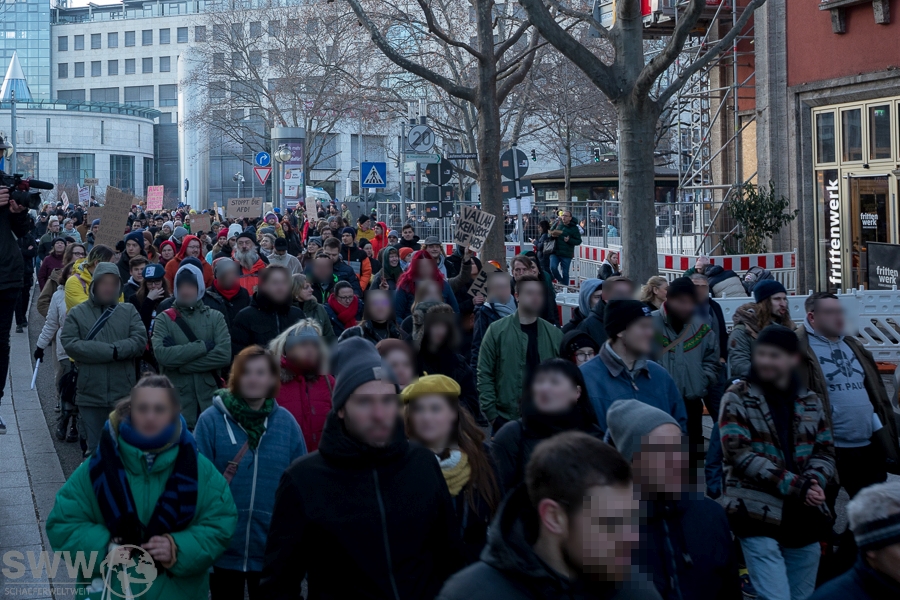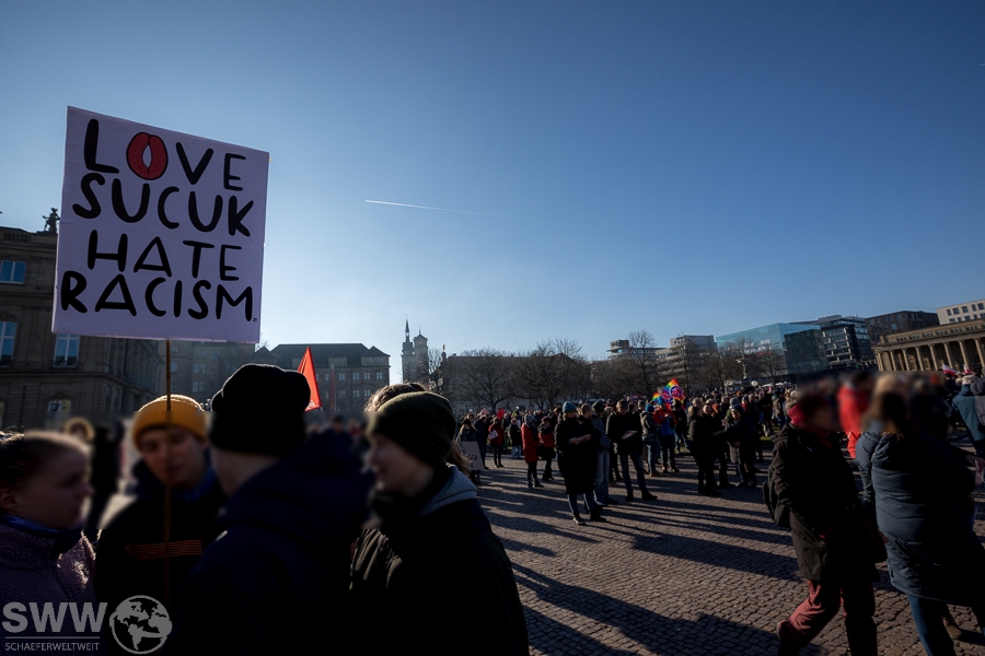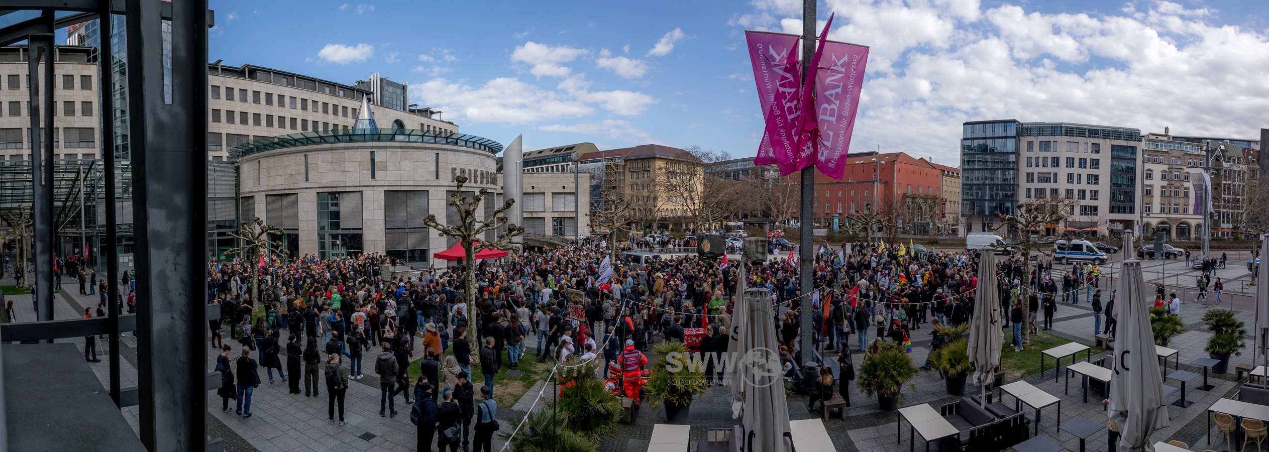 Am 22. März 2025 trafen sich im Stadtgarten in Stuttgart etwa 2.000 Demonstranten, um einem bundesweiten Aufruf zu Demonstrationen in allen Bundesländern zu folgen. Eine Gegendemo direkt auf dem Börsenplatz, in etwa 200 Metern Luftlinie, zeigte hingegen, dass Rechte Demos in Stuttgart nicht weit kommen.