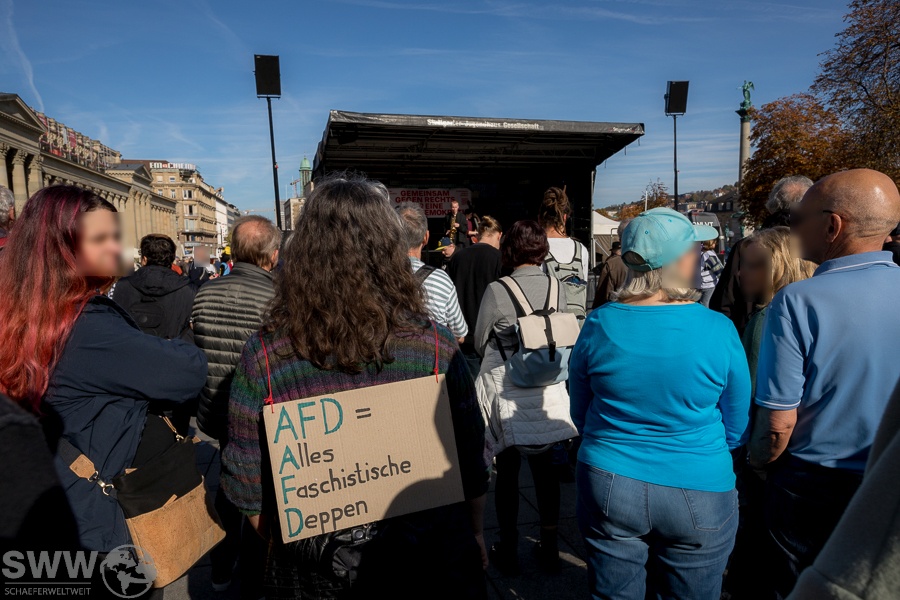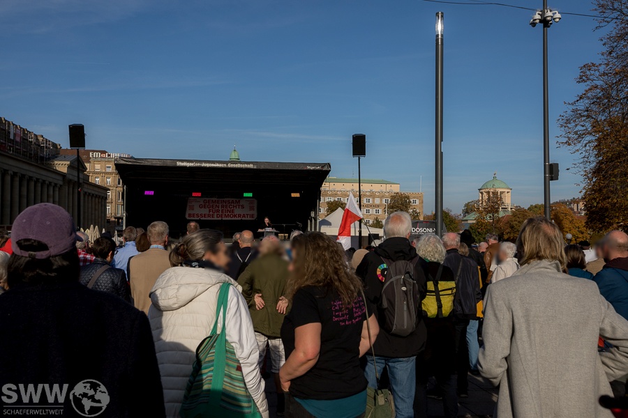 Am 26.10.2024 veranstaltete das Netzwerk gegen Rechts eine Kundgebung unter dem Motto „Wir müssen mehr tun – Gemeinsam gegen Rechts – Für eine bessere Demokratie“ auf dem Stuttgarter Schlossplatz.