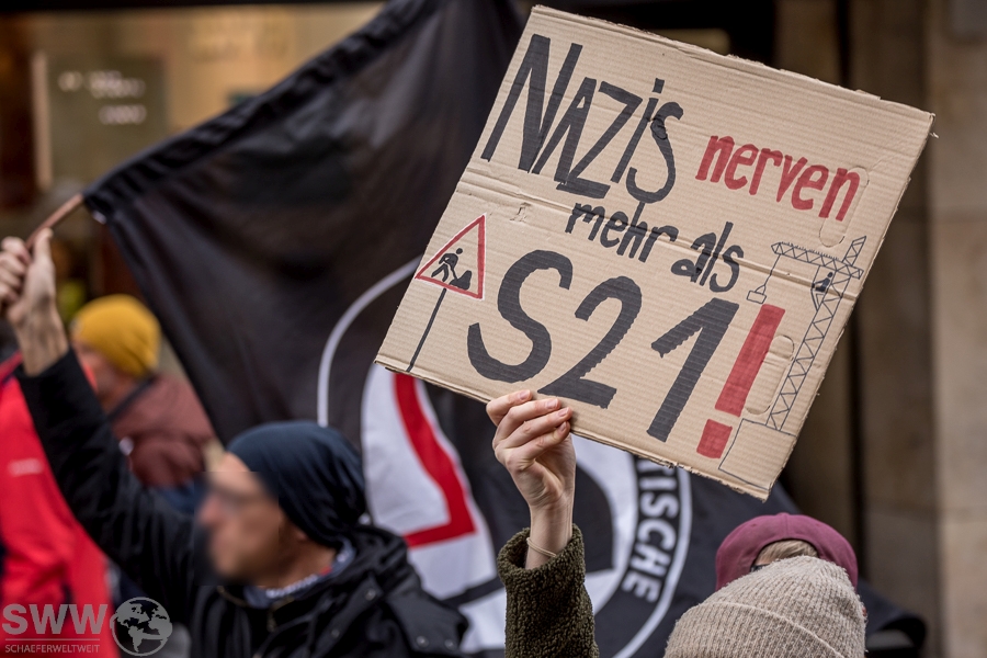 Dieser vernünftige Abbruch der Demonstration hingegen verwundert doch etwas, denn normalerweise wurden solche Demonstrationen in den letzten Jahren immer rücksichtslos von der Polizei durchgesetzt. Verwunderlich empfand ich auch, dass nach den beiden Demonstrationen diesmal auch verschiedene Rechte Demoteilnehmer einzeln aufgegriffen und durchsucht wurden. Dieses Vorgehen ist durchaus neu in Stuttgart und gibt zu denken, was der Hintergrund dabei ist. Ob sich diese erfreuliche neue Linie dauerhaft durchsetzt, wird sich allerdings erst in den kommenden Jahren zeigen.
