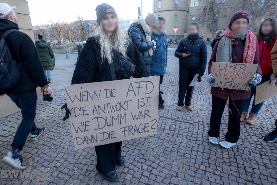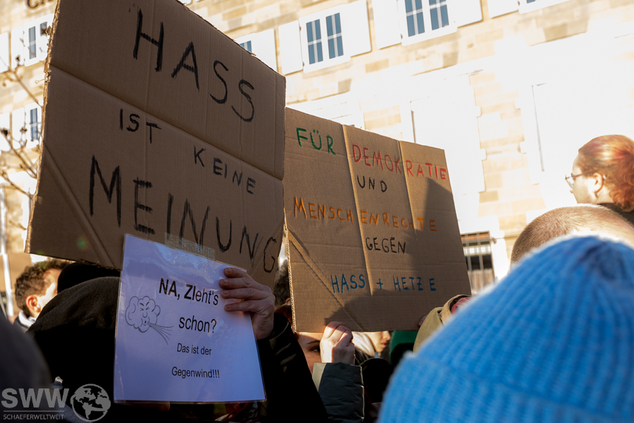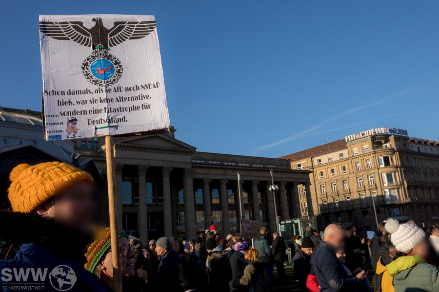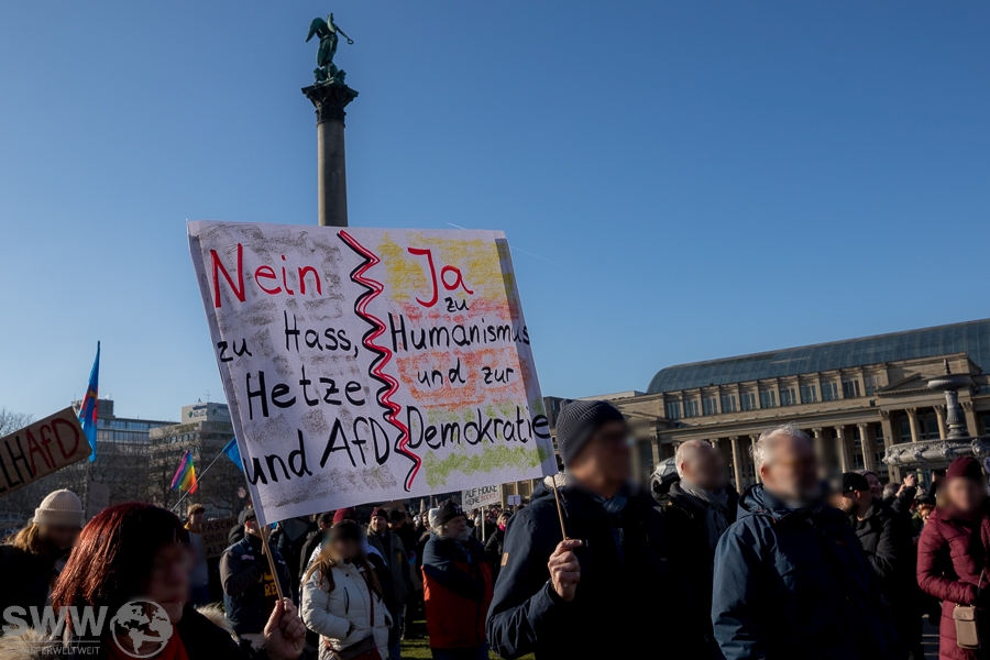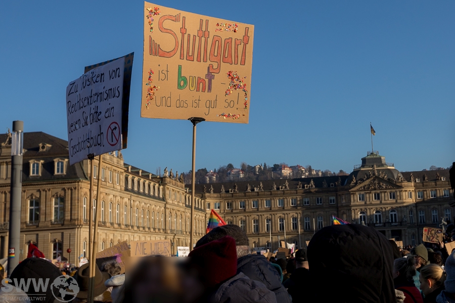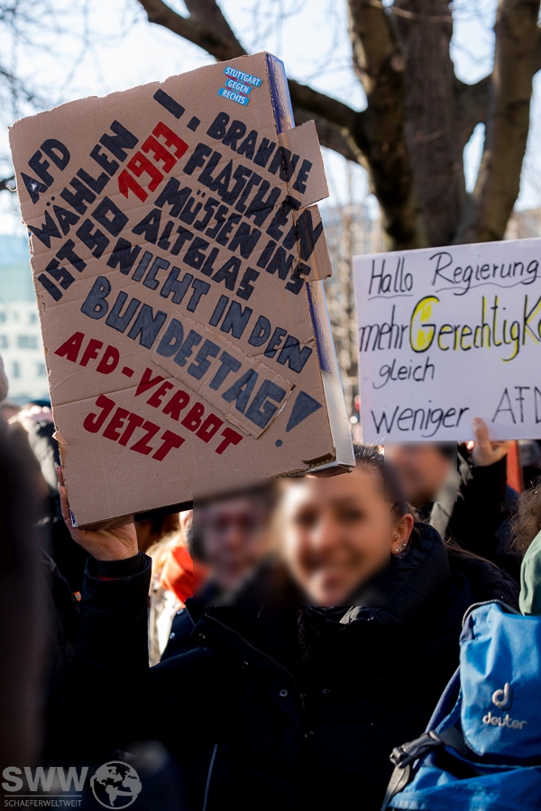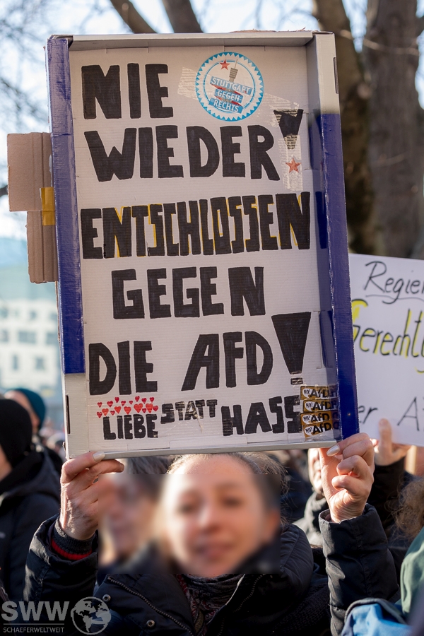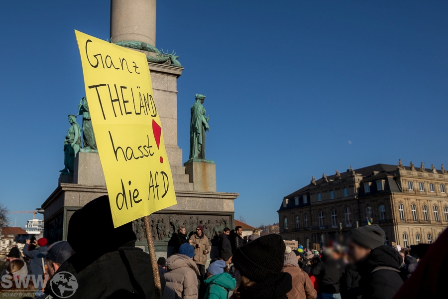 Bei wunderschönem Wetter trafen sich auf dem Stuttgarter Schlossplatz viele Tausend Bürger um an der „Demo gegen Rechts“ teilzunehmen. Hier nun einige Impressionen der Demo und deren enorm kreativen Schildern. Ich habe versucht so viele Schilder wie möglich zu fotografieren. Es sind letztlich dann wirklich viele Bilder und Fotos geworden. Die nächste Demo gegen Rechts findet in Stuttgart am 24. Februar 2024 statt – Infos (Link)