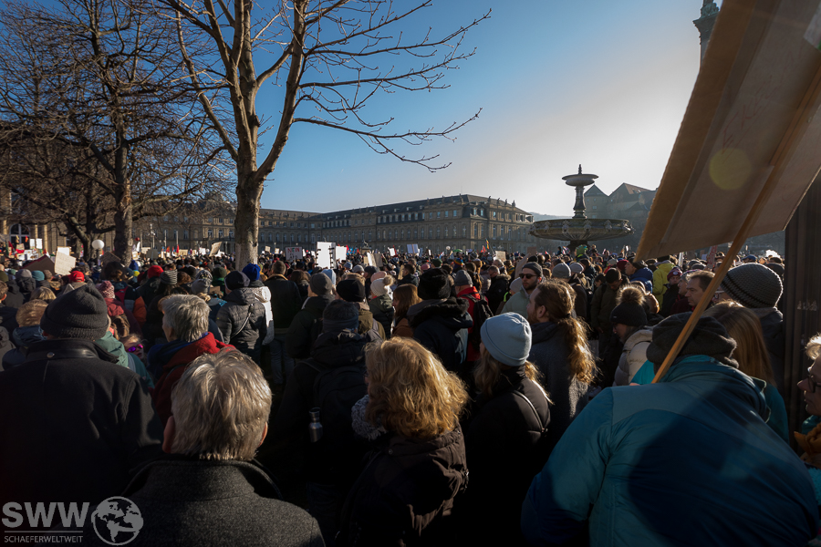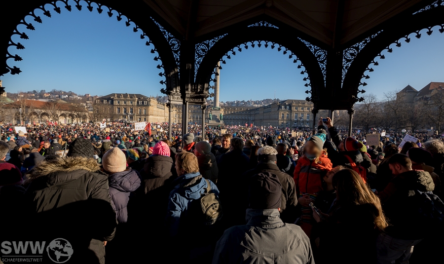 Impressionen und Videos der Demonstration auf dem Stuttgarter Schlossplatz. Laut Veranstalter kamen 44.000 Menschen zusammen und demonstrierten unter dem Motto „Wir sind die Brandmauer“ gegen Rechte Politik. Die Videos der Reden filmte dankenswerterweise Rolf Heidemann / Fluegel.tv