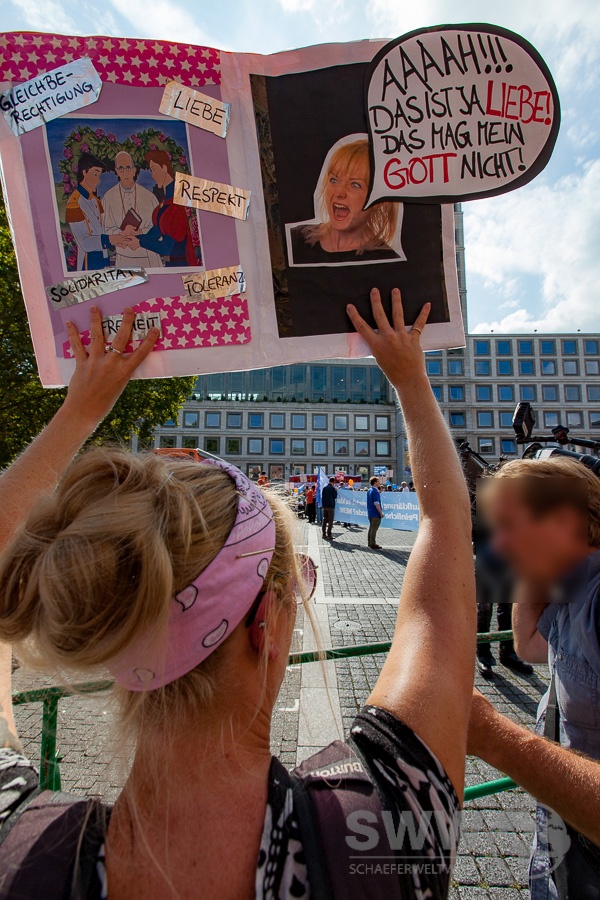 Stuttgart stand am 14.September im Zeichen zweier Demos: Einer kleinen Demo mit dem Motto „Elternrecht und Sexualerziehung in Schule und KiTa“ auf dem Marktplatz welche im Twitterjargon schnell unter #StussBuss bekannt wurde und der Demo unter dem Motto „Respekt und Akzeptanz von sexueller und geschlechtlicher Vielfalt“ welche auf dem Karlsplatz stattfand und sich in die zahlreichen bundesweiten #WirsindMehr Demos einreihte.