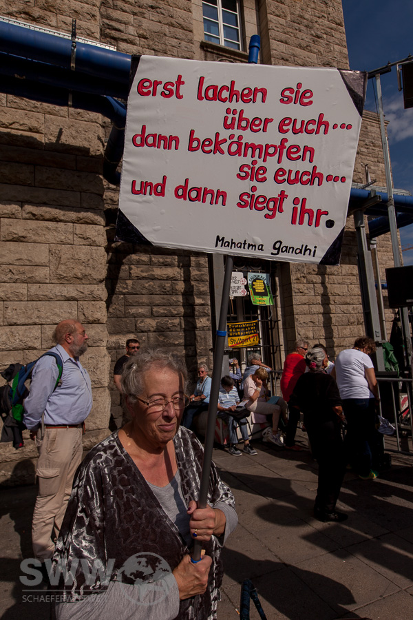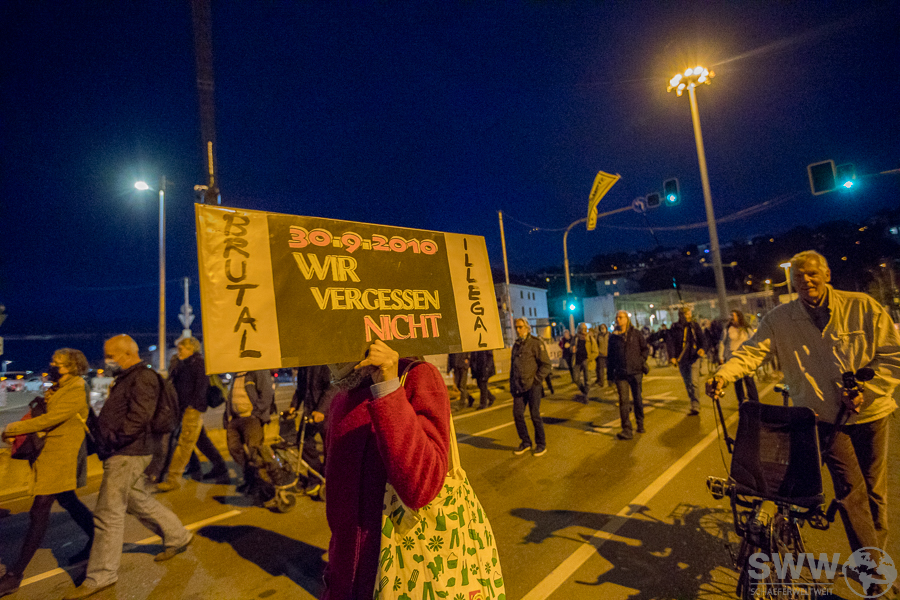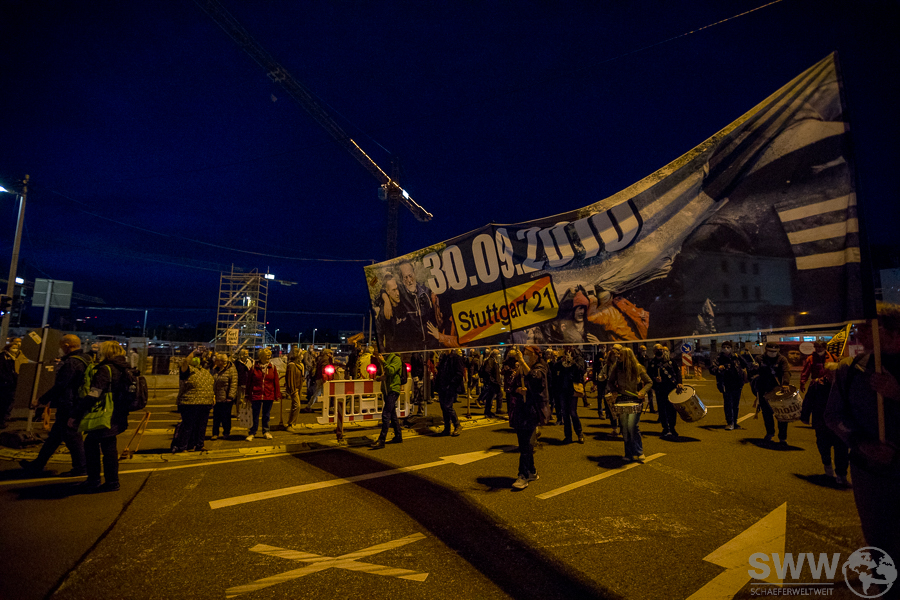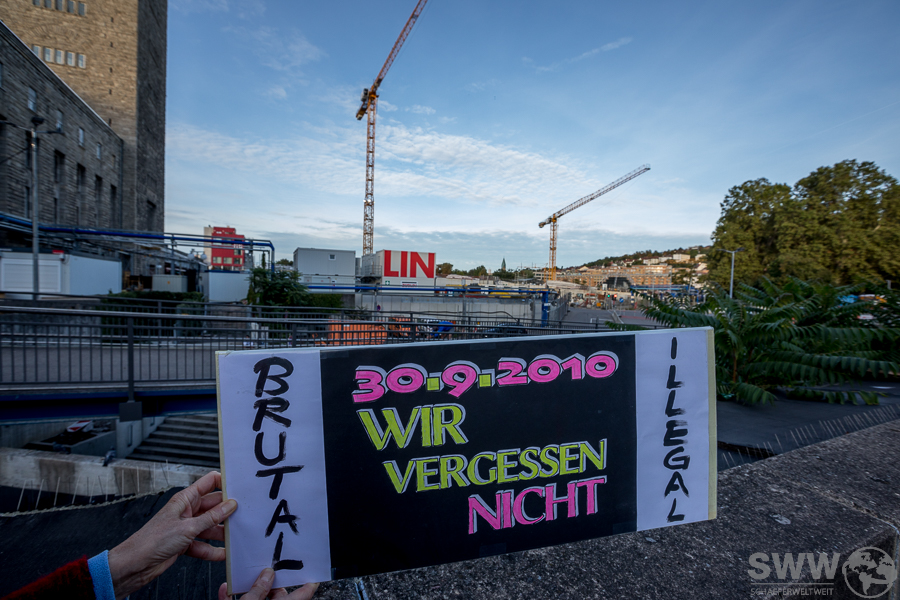 Die Bürgerbewegung gegen S21 erinnerte am 29.9.2018 mit einer Samstagsdemo vor dem Stuttgarter Kopfbahnhof zum achten Mal an den „Schwarzen Donnerstag“. Beim brutalen und rechtswidrigen Polizeieinsatz gegen S21-Gegner im Stuttgarter Schlossgarten wurden am 30. September 2010 etwa 400 Demonstranten verletzt, einige davon schwer.