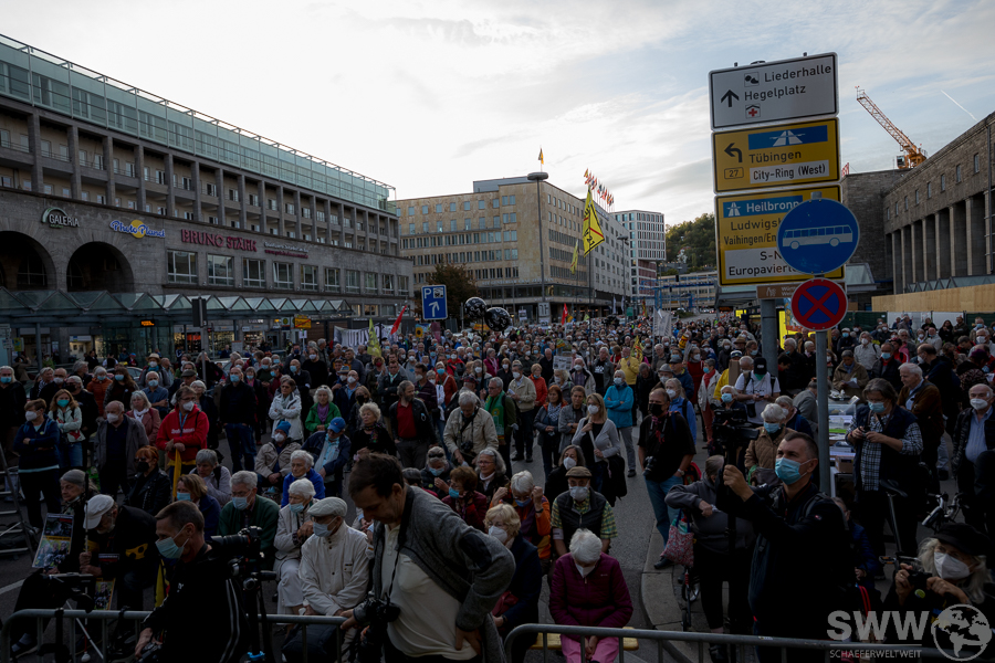 Der Demozug führte vom Hauptbahnhof über den Gebhard-Müller-Platz, vorbei am Landtag, über Planie und Schillerplatz zum Stuttgarter Rathaus.