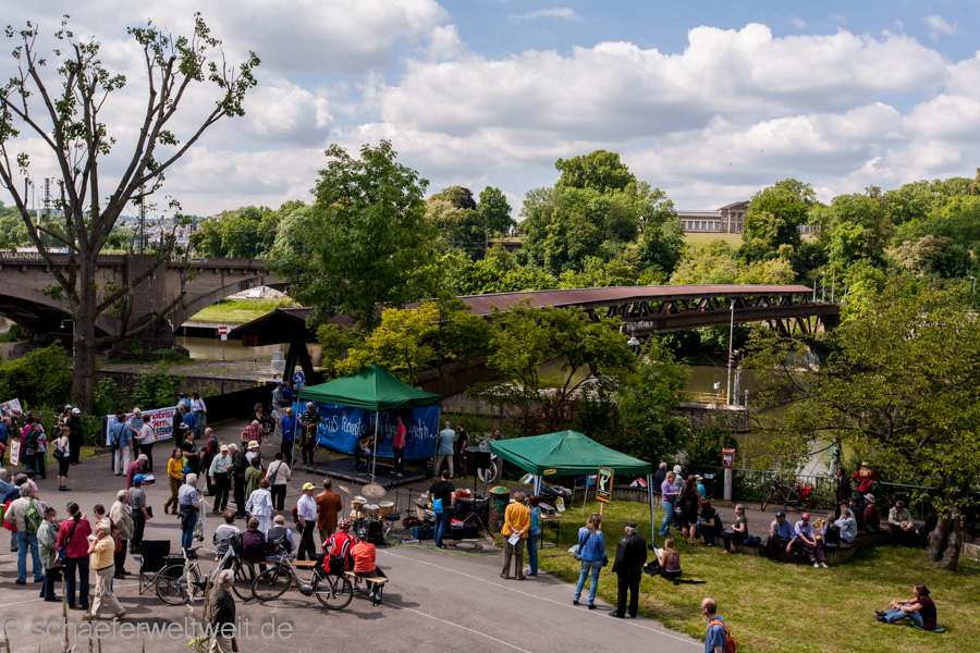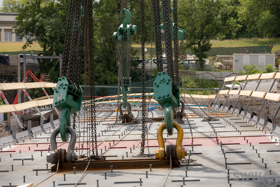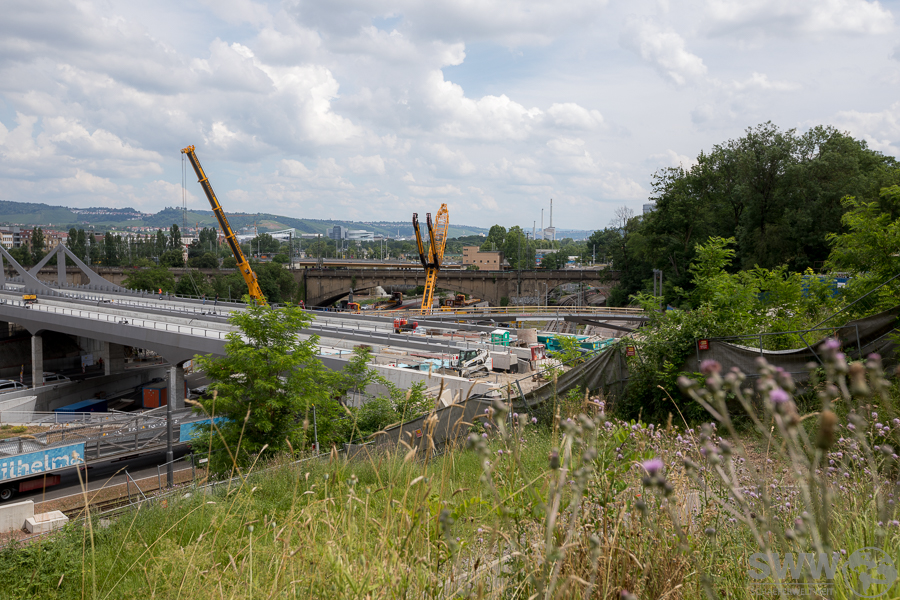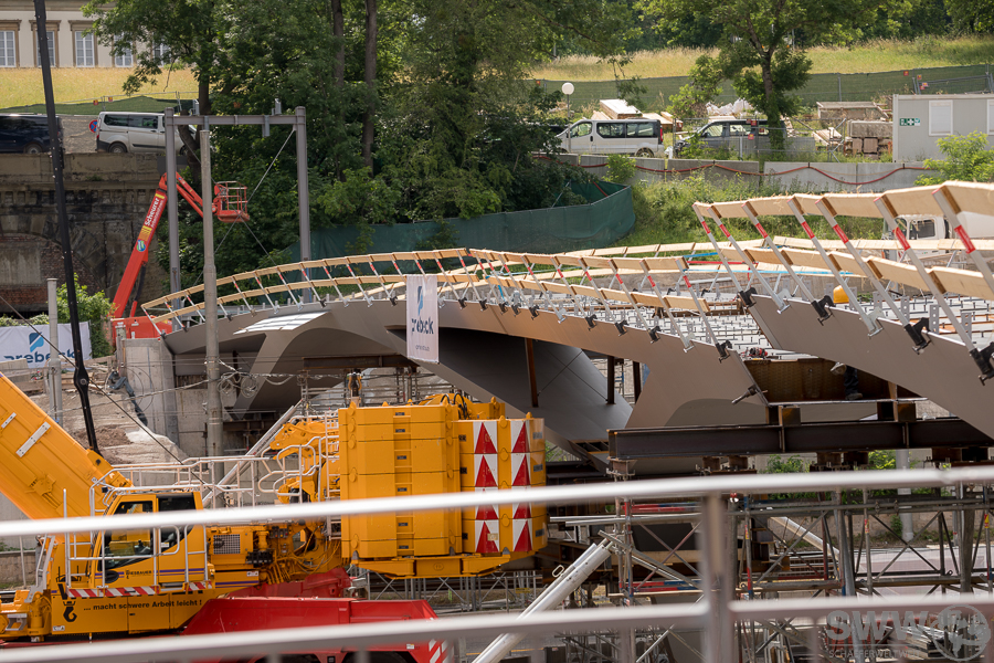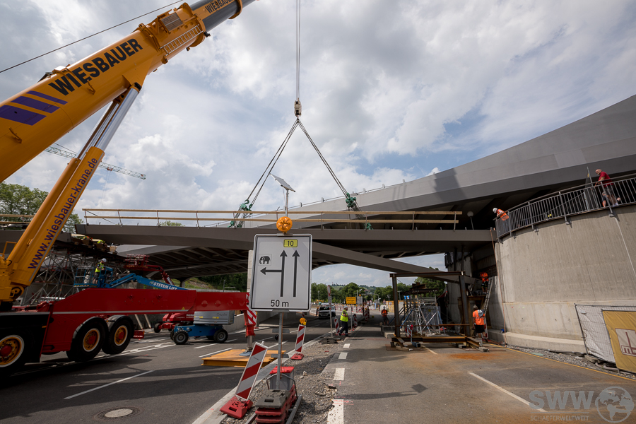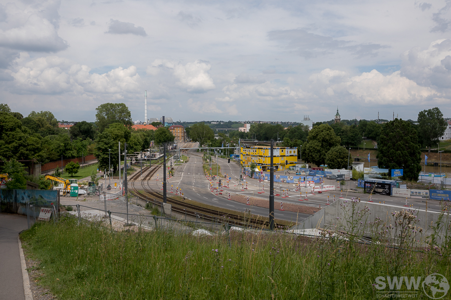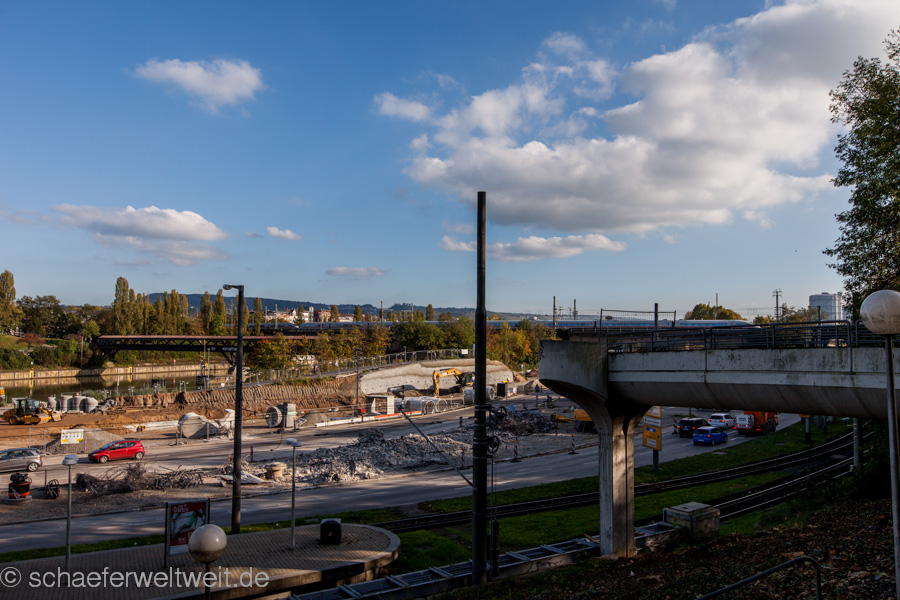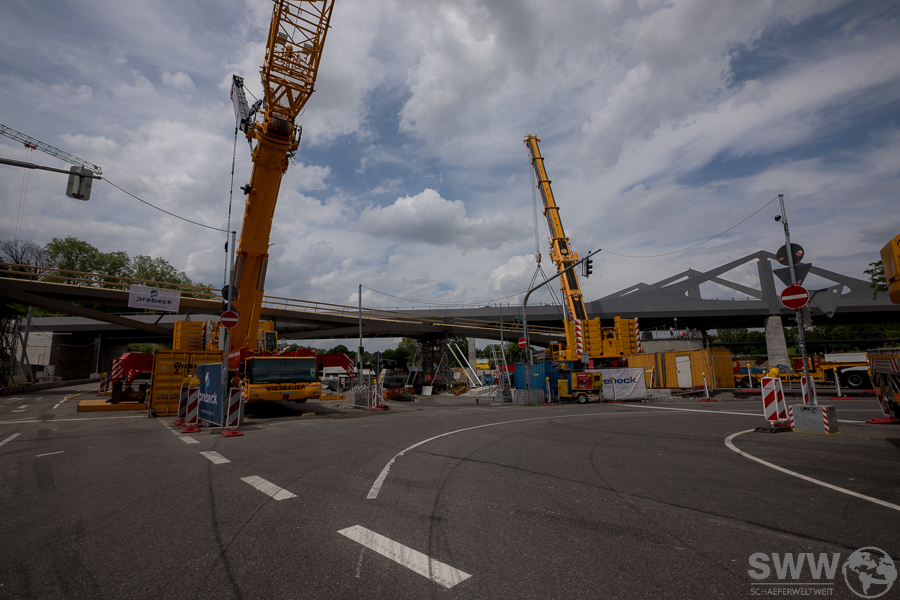 Dieses Wochenende bekommt der an die S21 Neckarbrücke angehängte Fußgängersteg seine noch fehende Verlängerung über die B10/B14 (Diese ersetzt quasi den Elefantensteg) Bei der Eröffnung dieses Anhängsels am 20. April 2021 hatte es nicht gereicht ihn auch schon fertig zu stellen. zu diesem Zweck wurde nun bis Montag Morgen dieser Abschnitt der B10/B14 gesperrt.