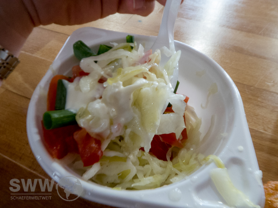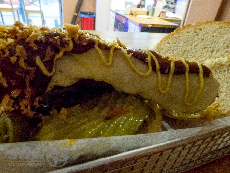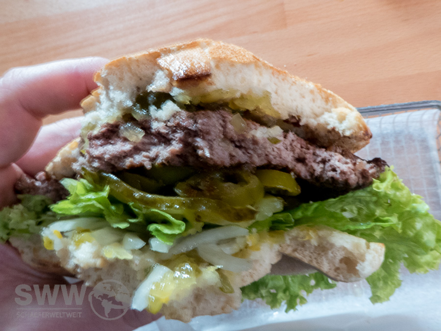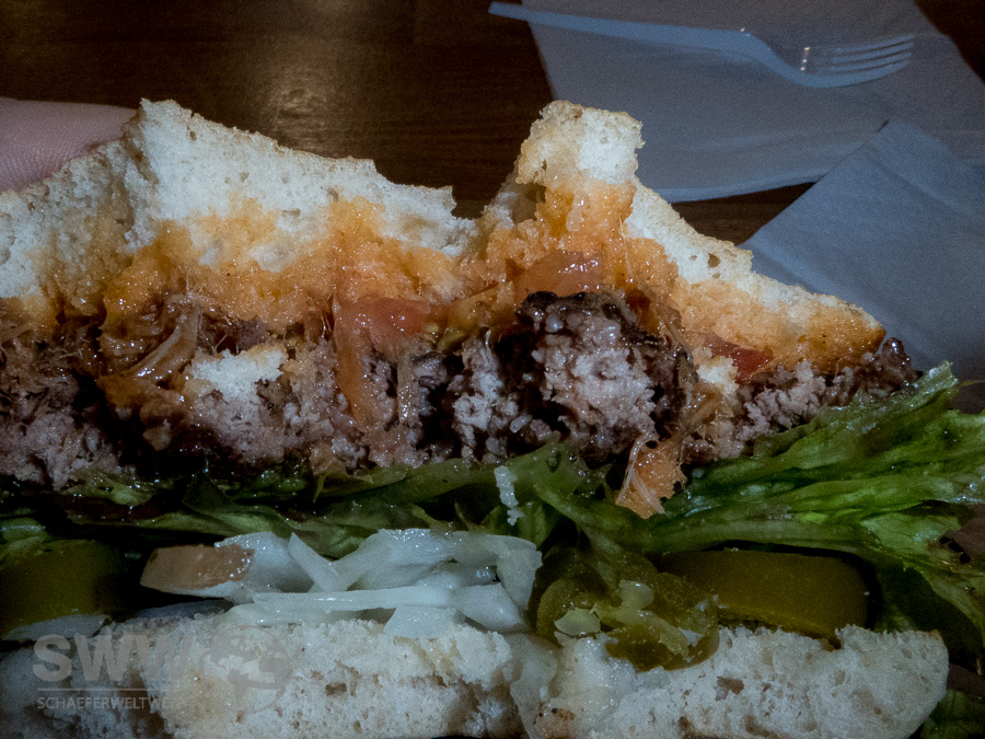 Die Zutaten vom Fleisch bis zur Zwiebel kommen aus lokalen Quellen und die meisten Saucen sind nach eigenen kanadischen Rezepten selbst hergestellt. Diese Qualität schmeckt man auch wobei die Vielfalt der möglichen bestellbaren Varianten den ungeübten Burger Neuling doch schon überlasten könnte. Fans von Burgern und BBQ kommen allerdings definitiv auf ihre Kosten. Das im Smoker gemachte Pulled Pork welches im Laden nur noch erwärmt werden muß, ist anders als das immer mehr in Mode kommende Fertigprodukt anderer Läden vorzüglich. Auch wenn es für meinen persönlichen Geschmack gerne mehr Rauch gesehen haben könnte. Das für meinen Begriff dazu gehörende Canadian Cole Slaw (welches aber extra bestellt werden muß) zeigt doch einen interessanten merklichen Unterschied zum Amerikanischen Cole Slaw.