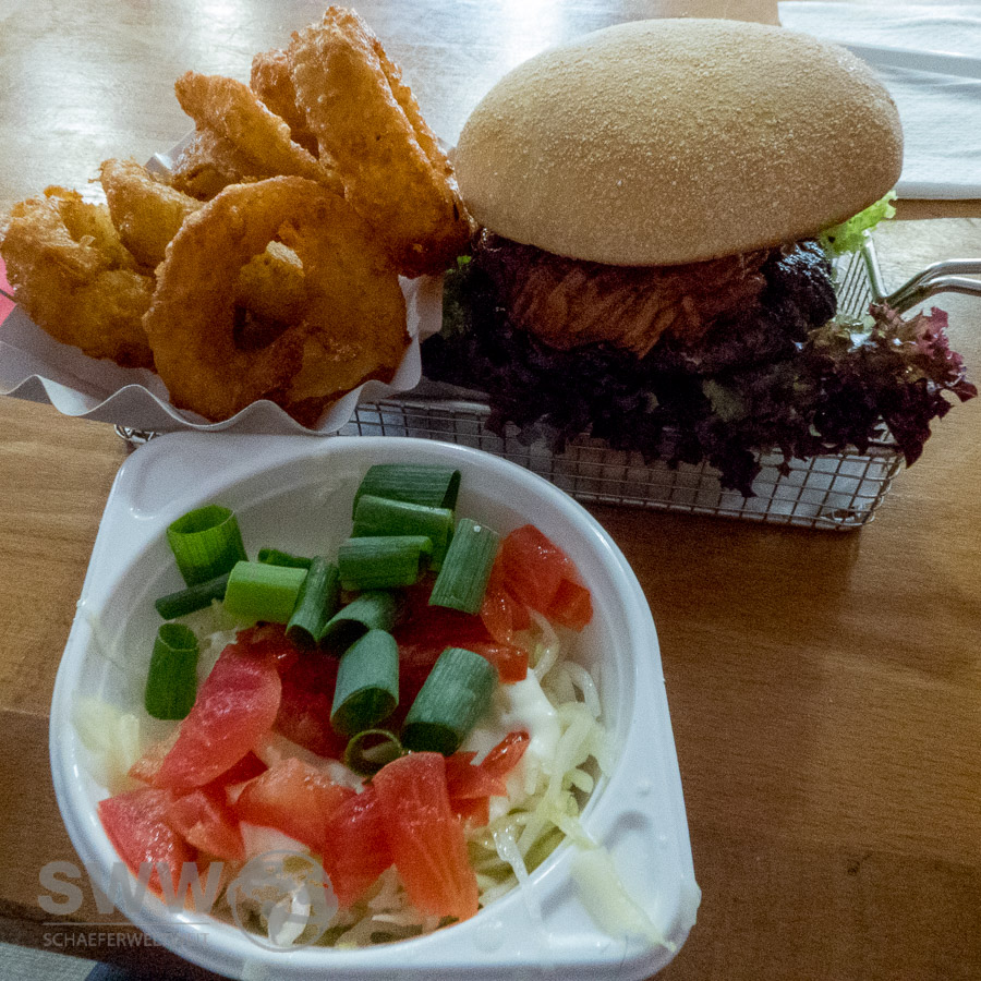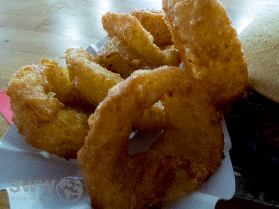 Die Burger lesen sich Einfallsreich wobei ich noch nicht alle getestet habe. Der „Hard Worker“ kommt mit leckeren 300g frisch gewolftem Rindfleisch aus der Region daher und lässt kaum Grund zur Kritik, einzig dass auf Nachfrage angebotene und bestellte „medium“ scheint keine Beachtung am Grill gefunden zu haben. Den selbst geschnittenen Fries aus Kartoffeln von Weilimdorfer Bauern fehlt es jedenfalls an nichts und sie sind auch in der Version „Canadian Poutine“ durchaus interessant. Hierbei werden die Pommes mit Käsewürfeln, geriebenem Käse und Bratensauce garniert (heißer Tipp – etwas warten bis die Käsewürfel weich geworden sind).