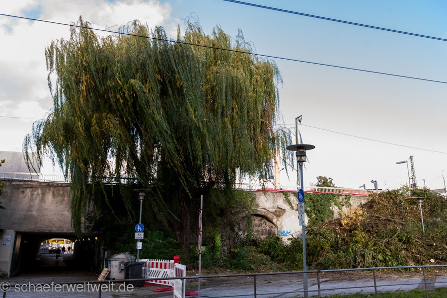 Noch im Jahre 2013 hatte die Bahn groß verkündet (sww berichtete / PDF der Bahn siehe Seite 2) das die alte Trauerweide am Feuerbacher Bahnhof erhalten bliebe. Wie zu befürchten war, sind auch dies wieder nur hohle Lippenbekentnisse gewesen. Wie jetzt von der Bahn bekannt gemacht wird soll der Baum fallen. Damit wird dieses ziemlich trostlose Eck rund um den Bahnhof in Feuerbach noch trostloser. Zugegeben kaum zu Glauben das dies Möglich ist, nachdem dieser Bahnhof mit seinem Umfeld über die Jahre immer mehr und mehr verkommt. Aber wie man die Deutsche Bahn kennt – kein Ziel ist zu Hoch wenn es darum geht Zerstörung und Trostlosigkeit ins Stuttgarter leben zu bringen. Das Bezirksrathaus in Feuerbach sollte sich schämen – nicht nur für das allgemeine Umfeld am Bahnhof sondern vor allem für solche Opfer – für ein Sinnloses Bahnprojekt und nochmehr – für schnöde völlig Nutzlose „Baueinrichtungsfläche“!