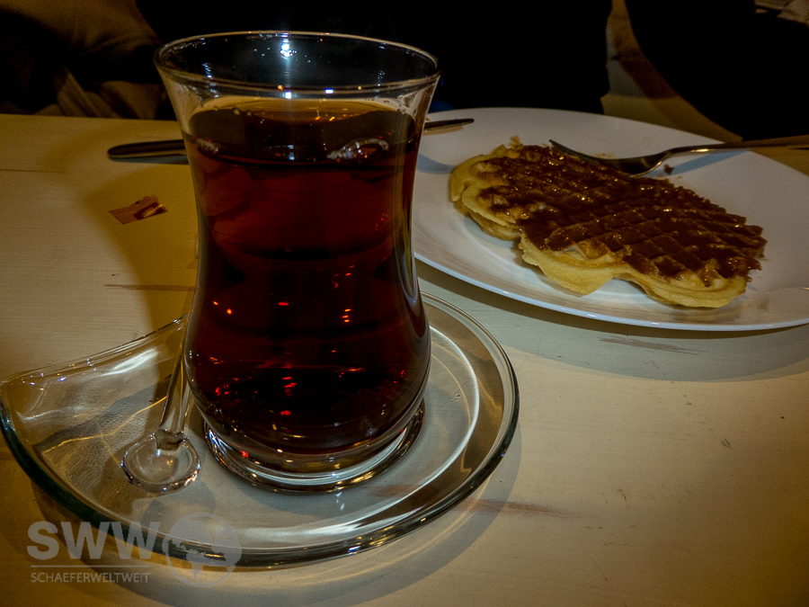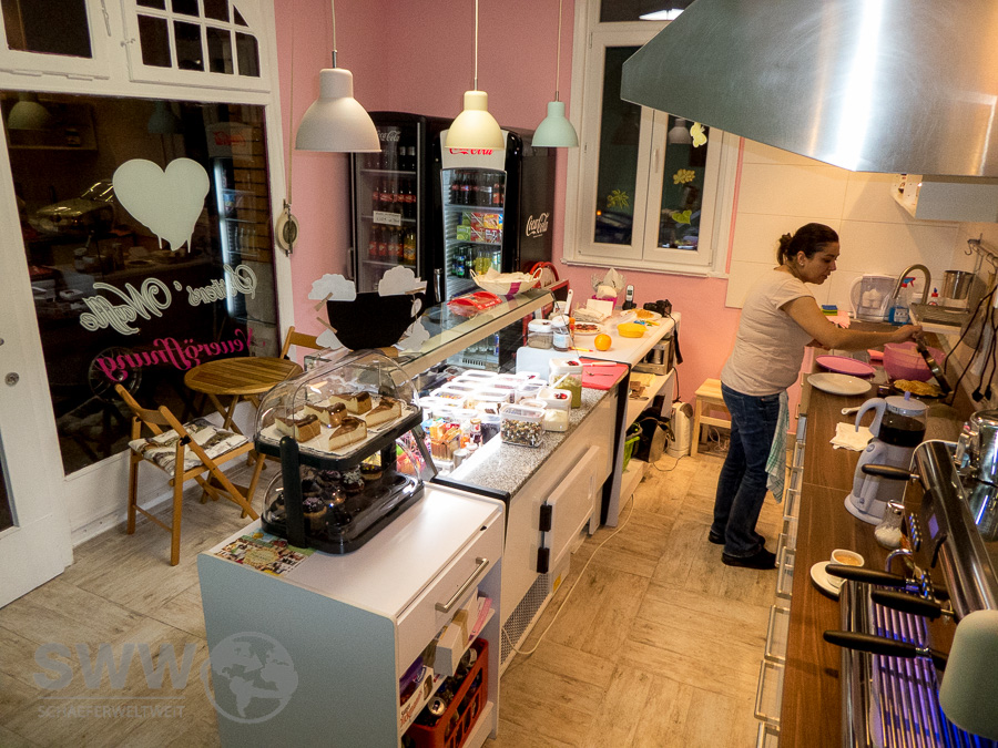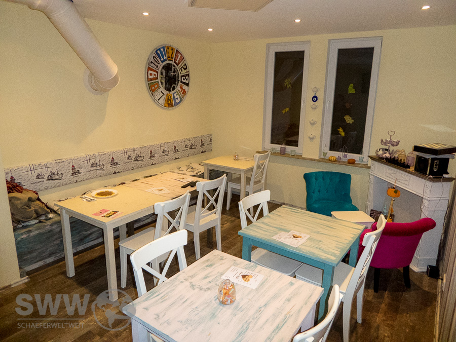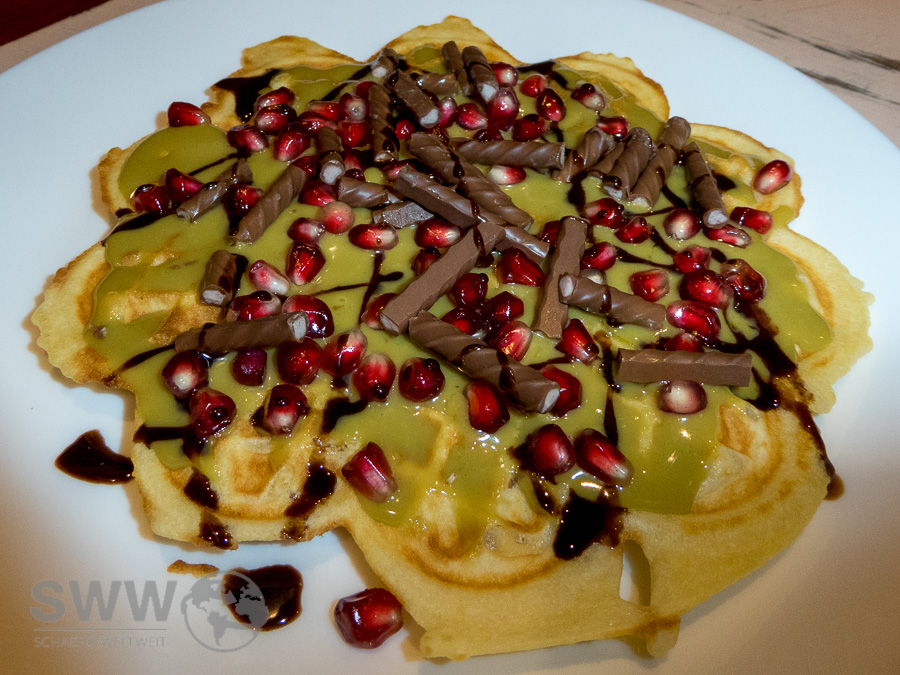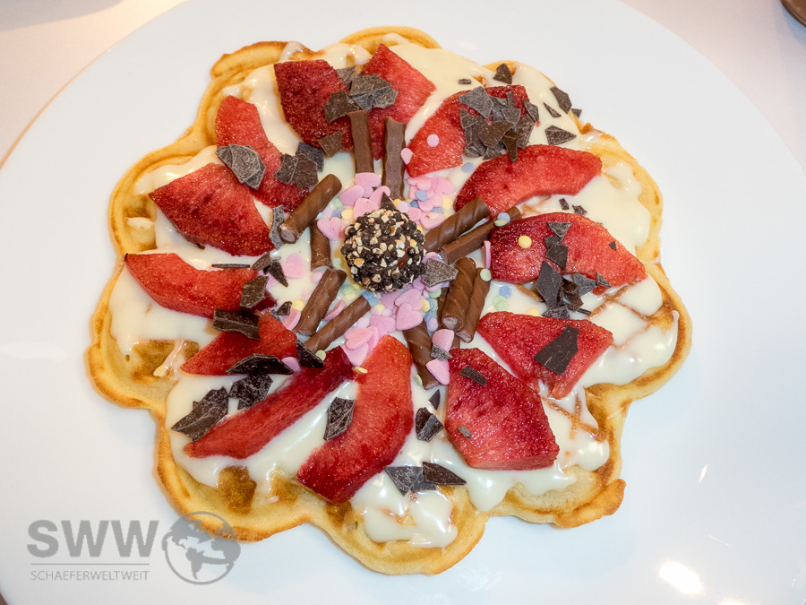 Das Café läd also nicht nur mit einem gemütlich und liebevoll eingerichteten Nebenraum zum Besuch ein, sondern vor allem wegen den Waffeln mit frischen Früchten aller Art und zahlreichen anderen Toppings.