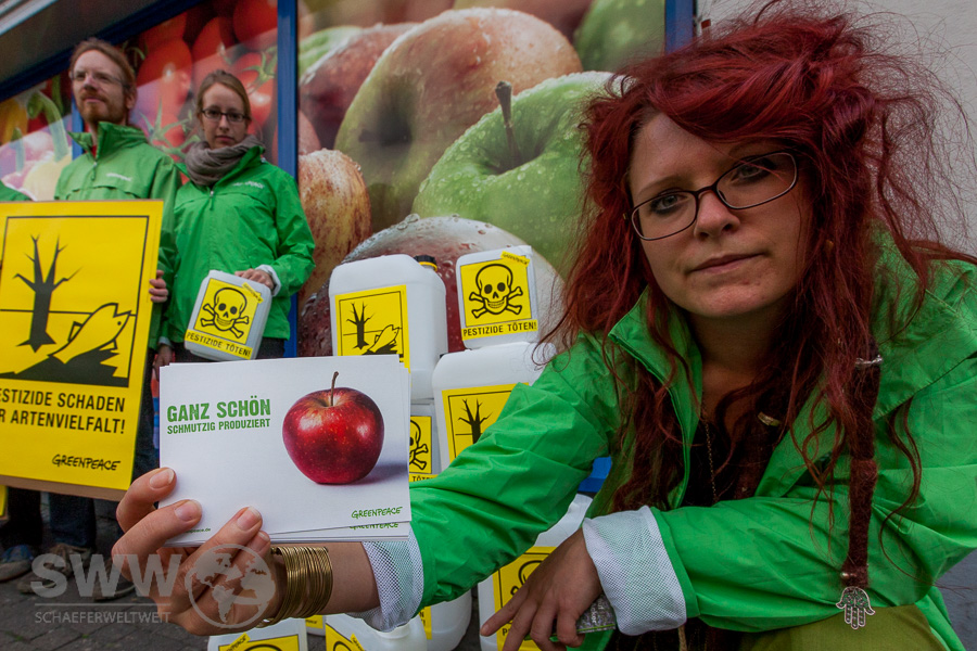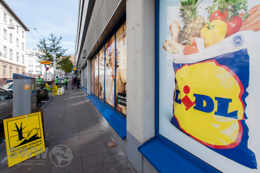 IMG_9885Mit einer Unterschriftenaktion im Rahmen einer Kampagne (link) zum Stopp des ungebremsten Pestizideinsatzes – macht „Greenpeace Stuttgart“ vor einer Lidl Filiale am Olgaeck auf die Ergebnisse einer aktuellen Greenpeace Untersuchung aufmerksam. Die Tests hatten gezeigt, dass die Anwendung von Agrargiften immer noch zum Alltag im Obstanbau gehört. (link)  Auch online mitmachen -> Protestmail senden
