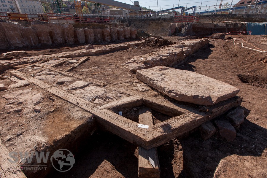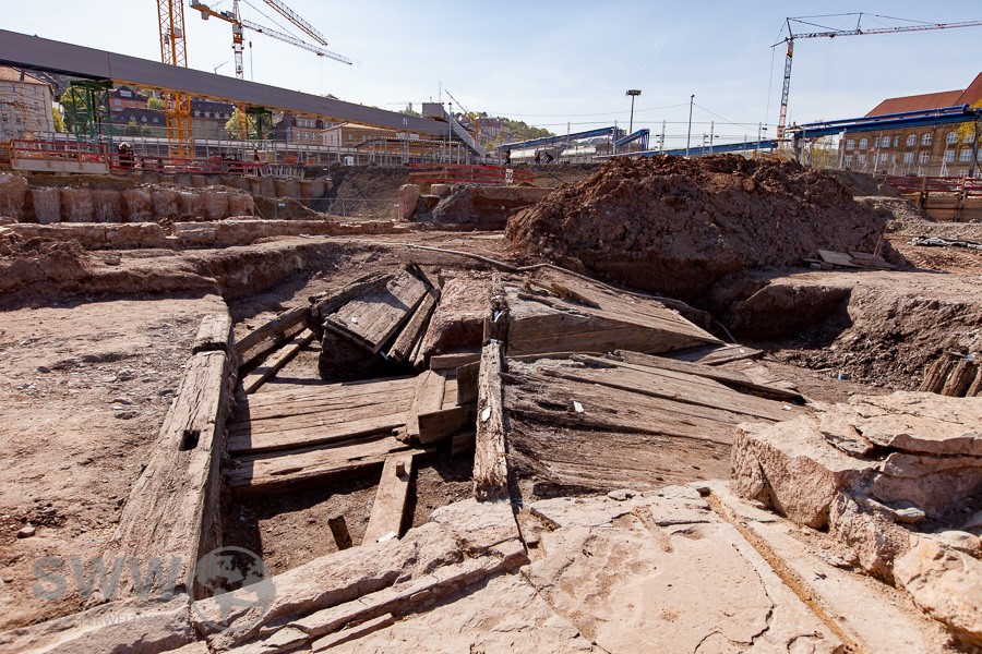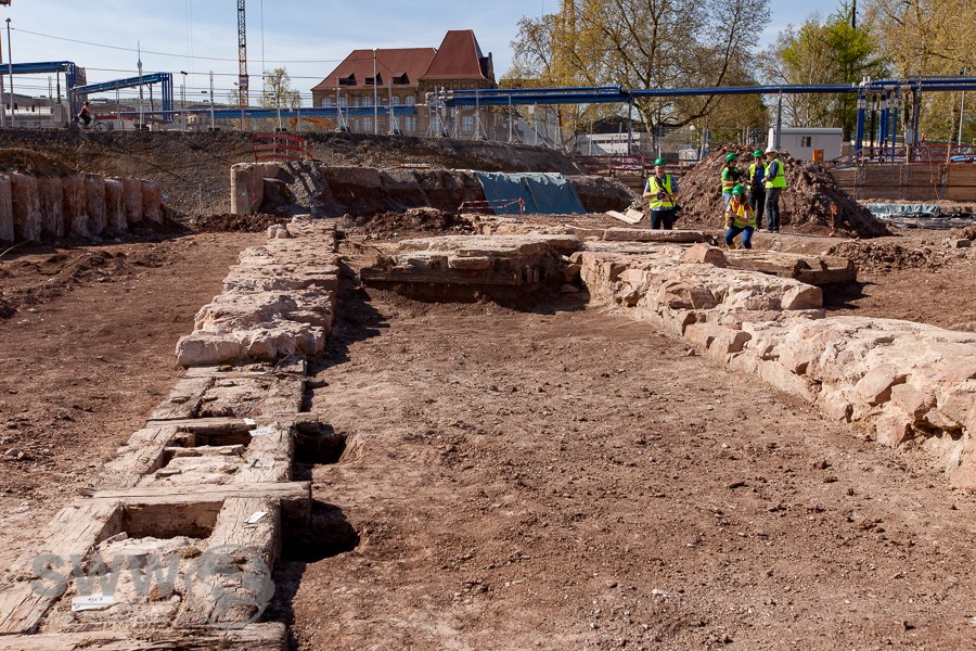 Seit Anfang Februar sind im Baufeld des künftigen Stuttgarter Hauptbahnhofs archäologische Ausgrabungen im Gange. Mitarbeiter des Landesamts für Denkmalpflege (LAD) im Regierungspräsidium Stuttgart haben unter anderem Reste einer steinernen Einfassung des Nesenbachs entdeckt, die vermutlich aus dem 16. oder 17. Jahrhundert stammen, ebenso ein Stauwehr aus Holz, das im 17. Jahrhundert errichtet worden sein könnte.
