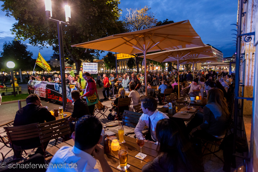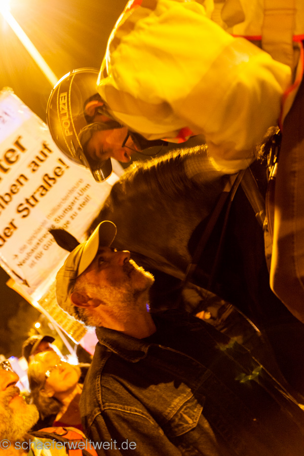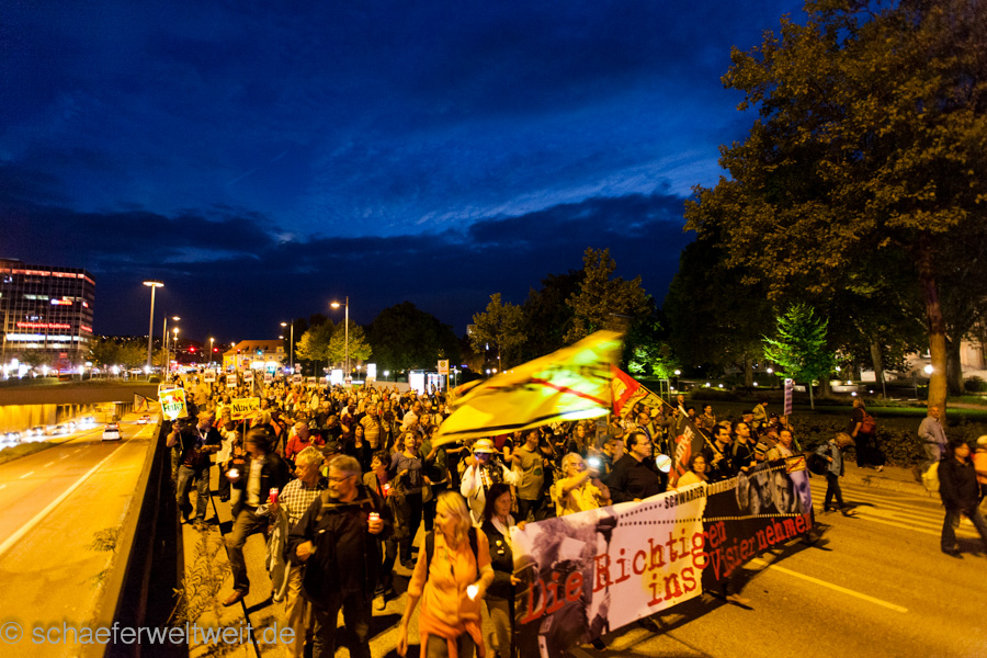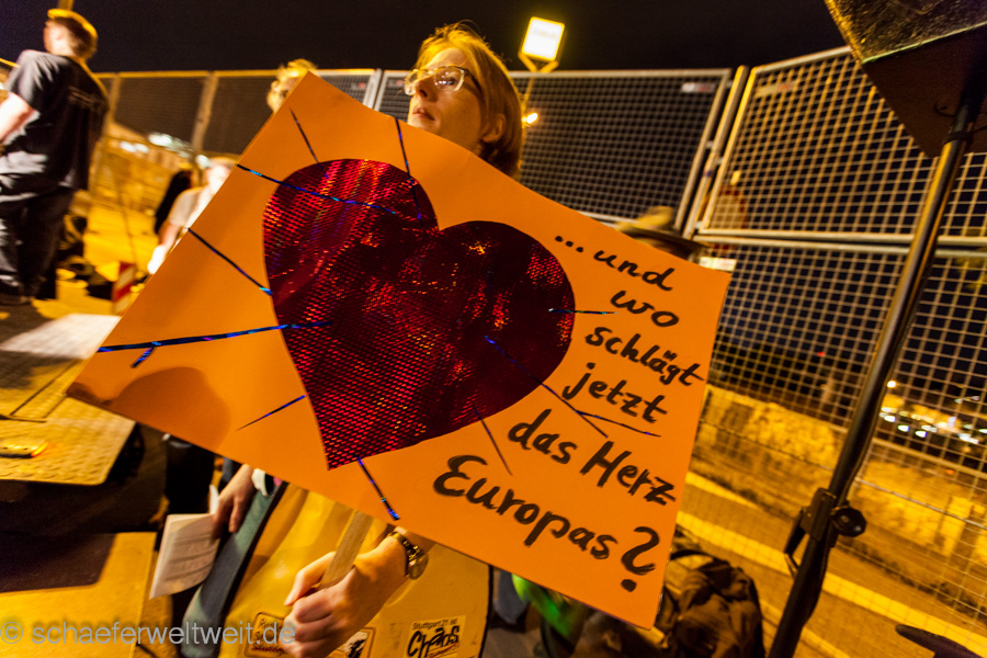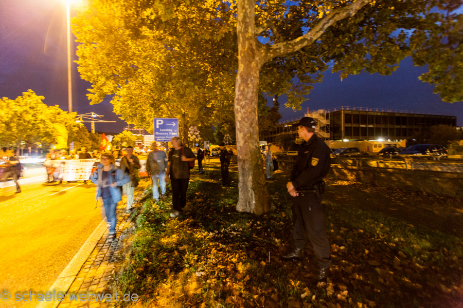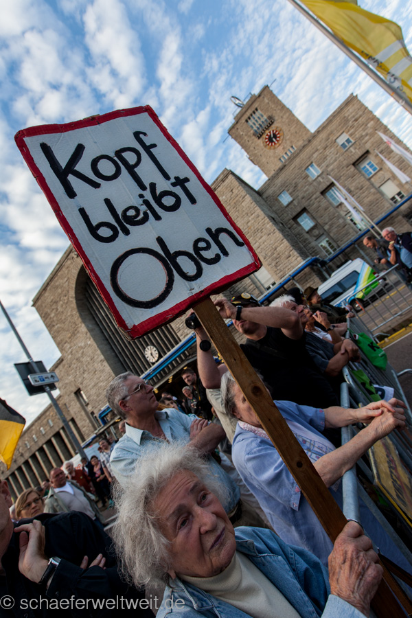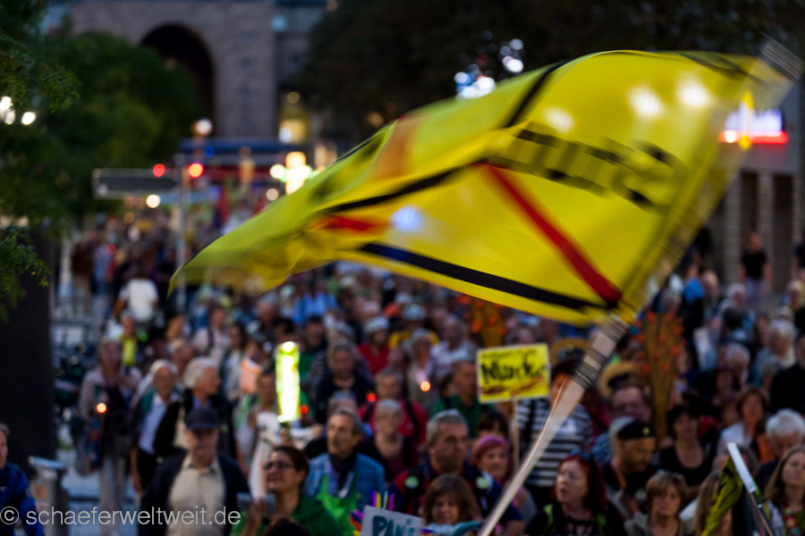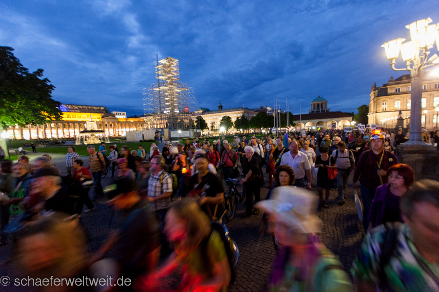 In einer kraftvollen Demonstration versammelten sich ca. 2000 Stuttgart 21 Gegner vor dem Kopfbahnhof in Stuttgart und gegen Stuttgart 21. Sie erinnersten gleichzeitig an den morgigen Jahrestag des als „Schwarzer Donnerstag“ bekannt gewordenen Ergenisses im Jahr 2010. Damals wurde unter der Regierung des nie offiziell gewählten Stefan Mappus, Gewaltsam ein Stück Park geräumt. Beim Einsatz der sich recht schnell als Illegal erwies, da vom Eisenbahnbundesamt die Fällung schriftlich untersagt wurde, wurden vor vier Jahren weit über 300 Demonstranten teils sehr Schwer verletzt.