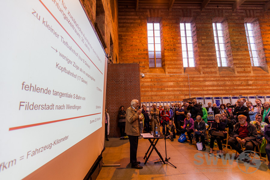 Am 16.04.2018 stellte nicht nur der Verkehrswissenschaftler Karlheinz Rößler im Stuttgarter Kopfbahnhof seine Studie zur Luftbelastung mit Stickoxid in den kommenden dreißig Jahren im Falle eines Weiterbaus von Stuttgart 21 vor, sondern es fand auch die erste Versammlung gegen Stuttgart 21 in der kleinen Schalterhalle des Stuttgarter Haupfbahnhof statt.