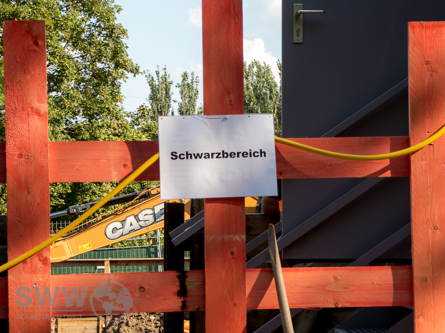 Diese „Trennung der Bereiche“ erscheint vor diesem doch ernsthaften Hintergrund allerdings sehr Eigenwillig umgesetzt. In der Praxis sieht man wie Arbeiter in normaler Kleidung genauso auf der gleichen Seite des trennenden Kontainers heraus kommen wie die Arbeiter welche bereits Schutzkleidung an haben bzw. aus der Grube geklettert kommen.