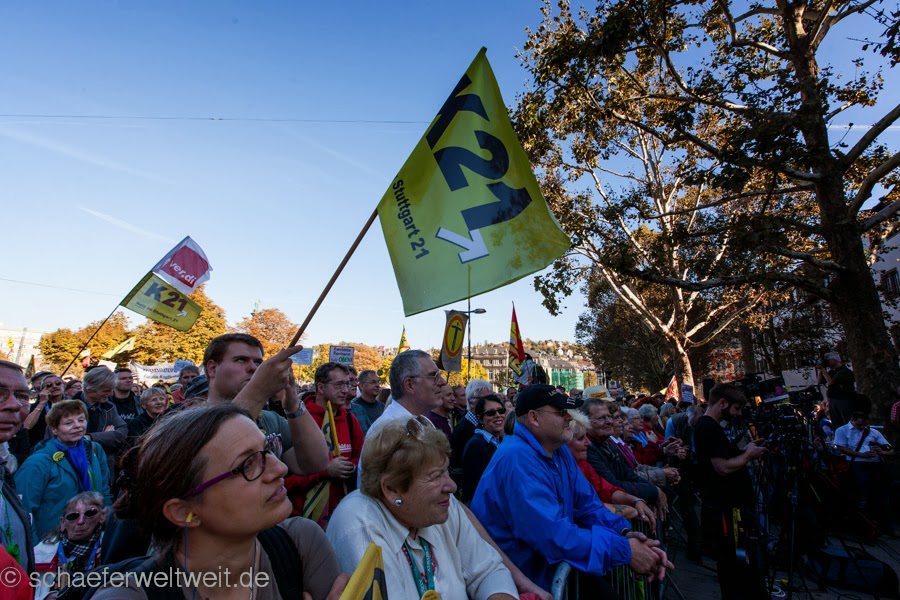 Heute um 14:30 Uhr, treffen sich tausende Gegner des Milliardenlochs Stuttgart 21 wieder wie jede Woche in Stuttgart – diesmal auf dem Schloßplatz. Diese Samstagsdemo ist der Startschuß für die Bürgerbegehren „Storno 21“ und „Leistungsrückbau S21“: Stadt soll S21-Verträge kündigen.