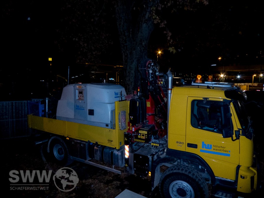 Wie man an den Bildern sehen kann interessiert das die Firma „Hölscher Wasserbau“ allerdings wenig. Auch wenn der LKW scheinbar auf Schutzmatten (zum Schutz der Grasnabe beim kurzzeitigen Befahren) steht ist es ein absolutes NoGo mit derart schweren Maschinen im Wurzelbereich von Bäumen zu fahren. Selbst wenn diese Belastung nur kurz gegeben wäre müsste man hier bei so stark geschützten Bäumen dringend Einschreiten, nun parkt aber dieser schwere LKW sogar über längere Zeit direkt auf dem Wurzelbereich. Ein Skandal welcher nicht zuletzt die Stadt Stuttgart und sämtliche Naturschutzverbände auf den Plan rufen müsste! Aber das hier ist Stuttgart – noch dazu Stuttgart 21 – da geht sowas.