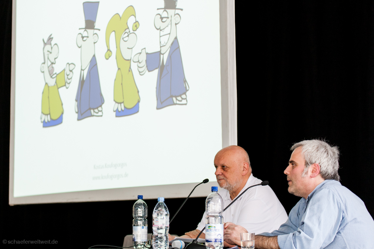 Die ‚Anatomie der Karikatur‘ ist aber nicht nur durch die Cartoons ein tolles Buch geworden, sondern auch durch die Texte, in denen uns diese besondere Art der Zeichnungen ein bisschen näher gebracht wird. Sie motivieren dazu, mal etwas genauer hinzuschauen und nicht nur den kurzen Lacher zu suchen oder beim ersten Schock einer Karikatur schon abzuwinken, sondern einen Schritt zurückzutreten und noch einmal nachzudenken.