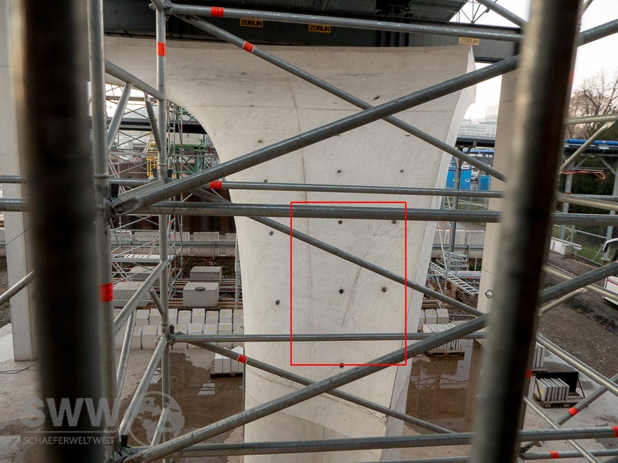 Ironischerweise verwechselt so mancher Befürworter des Milliardengrabes diese Stütze mit wirklich für den Bau eingesetzen Stütze. Dieses kleine Teil (nur ein Teil eines Achtels einer Stütze!) eines dieser „21-Kelche“ soll nur für Farb und Oberflächengüte dort betrachtet werden. Einen weiteren Nutzen hat die Sodastütze nicht. Auch für Termine haben Befürworter und Passanten kein Interesse.