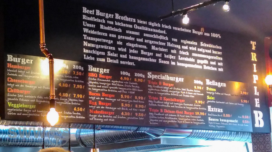 In der Vergangenheit habe ich bereits ja schon öfter über die Beef Burger Brothers in Zuffenhausen geschrieben. Nach einer Renovierungsphase sind diese nun in „Die Waage“ umgezogen. Natürlich habe ich mir den neuen Laden gleich am Sonntag bei der Eröffnung angeschaut und kann nur sagen – es hat sich absolut gelohnt! Nicht nur die Renovierung und Ausstattung lässt sich sehen, es ist nun auch endlich mal richtig Platz für die Gäste da. Bisher war der alte Laden ja Aufgrund der leckeren Burger ja meist hoffnungslos überfüllt gewesen. Dies wird jetzt mit den ca. 120 Plätzen die sich innen und Außen verteilen nicht mehr so schnell passieren. Zudem ist nun mit dem Parkplatz am Kelterplatz das leidige Parkplatzproblem erledigt. Hier noch ein paar (schlechte Handy-) Bilder der neuen Beef Burger Brothers in Zuffenhausen: