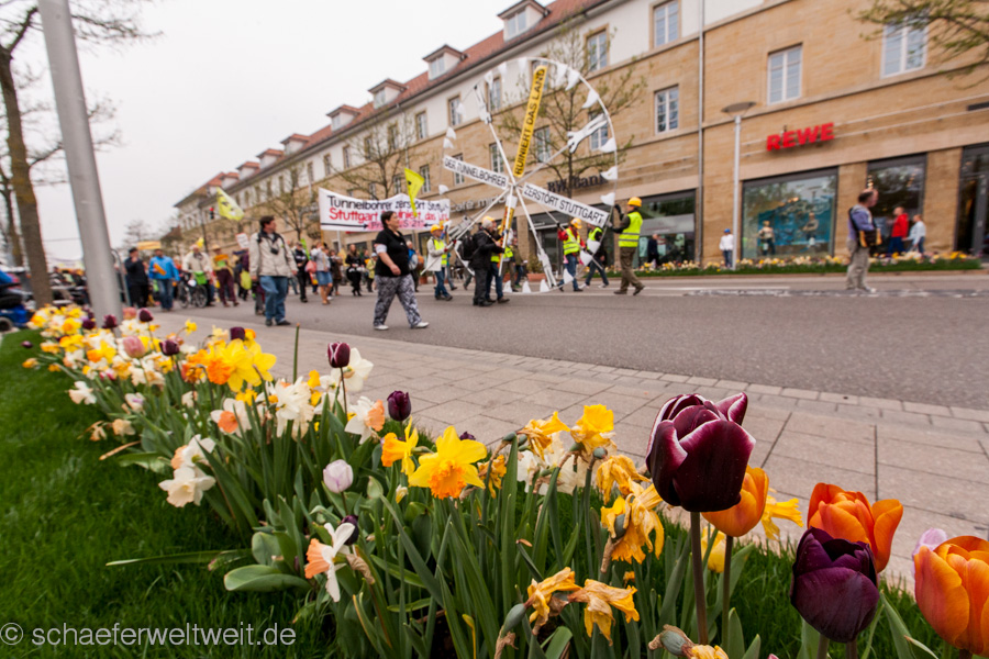 Unter dem Motto „Tunnelbohrer zerstört Stuttgart – Stuttgart ruiniert das Land … und die Ludwigsburger zahlen mit!“ demonstrierten hunderte Bürger in Ludwigsburg gegen Stuttgart 21. Sie zogen zu diesem Zweck vom Bahnhof durch die Fußgängerzonen bis zu den „Bärenwiesen“.