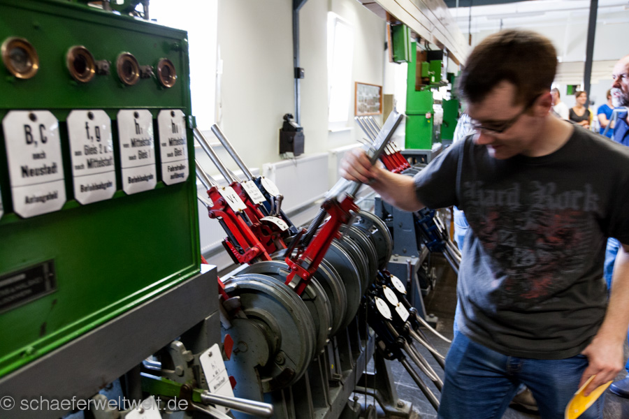 Der Fördervereins Lehrstellwerk Kornwestheim e.V. lud am 18.08.13 zum Tag der offenen Tür ins Lehrstellwerk in Kornwestheim ein und hunderte Menschen folgten diesem Ruf. Seit 1934 bis 1990 lernten hier die Fahrdienstleiter alles was man über Stellwerke wissen mußte. Das Lehrstellwerk war dabei ein Teil der Reichsbahnzentralschule (seit 1929 in Kornwestheim). Im Jahr 1984 beschloss die Bundesbahn das sie eine solche Einrichtung nicht mehr braucht. Heute lernen die Fahrdienstleiter (viel zu wenige – siehe Mainz!) diese Dinge in der Theorie und in Einweisungen vor Ort direkt am Stellwerk an dem sie dann eingesetzt werden.