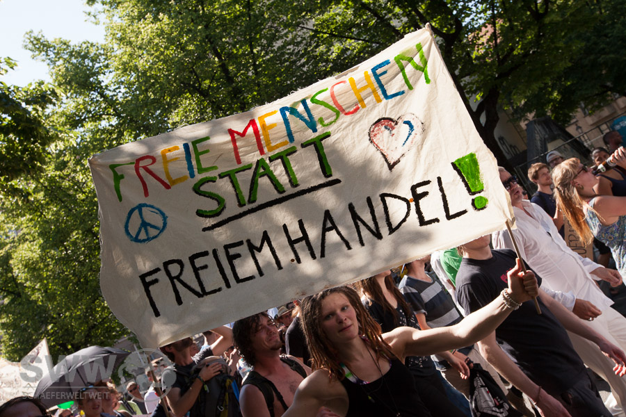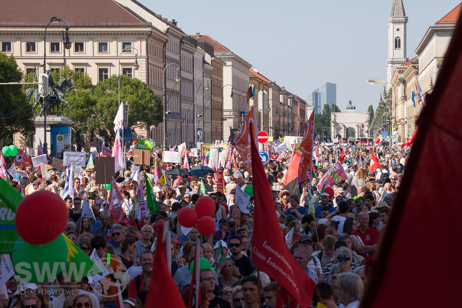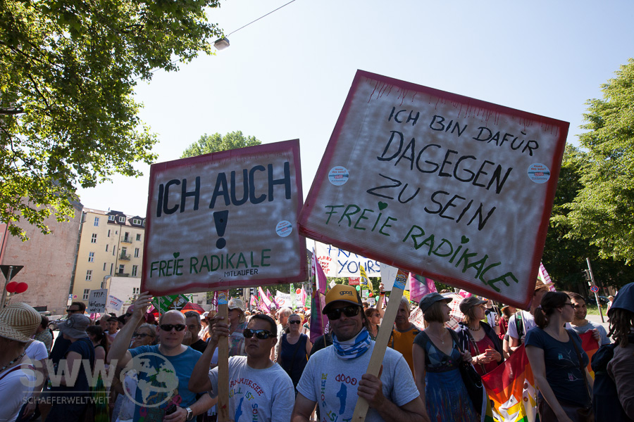 Am 04.06.15 fand in München eine große Demonstration gegen das Treffen der sogenannten „G7“ statt. Unter Wolkenlosem Himmel zogen Tausende Demonstranten durch die Straßen und zur Kundgebung. Der Demozug lief 48 Minuten lang an mir vorbei. Hier nun einige Bilder und ein paar kurze Videos aus München.