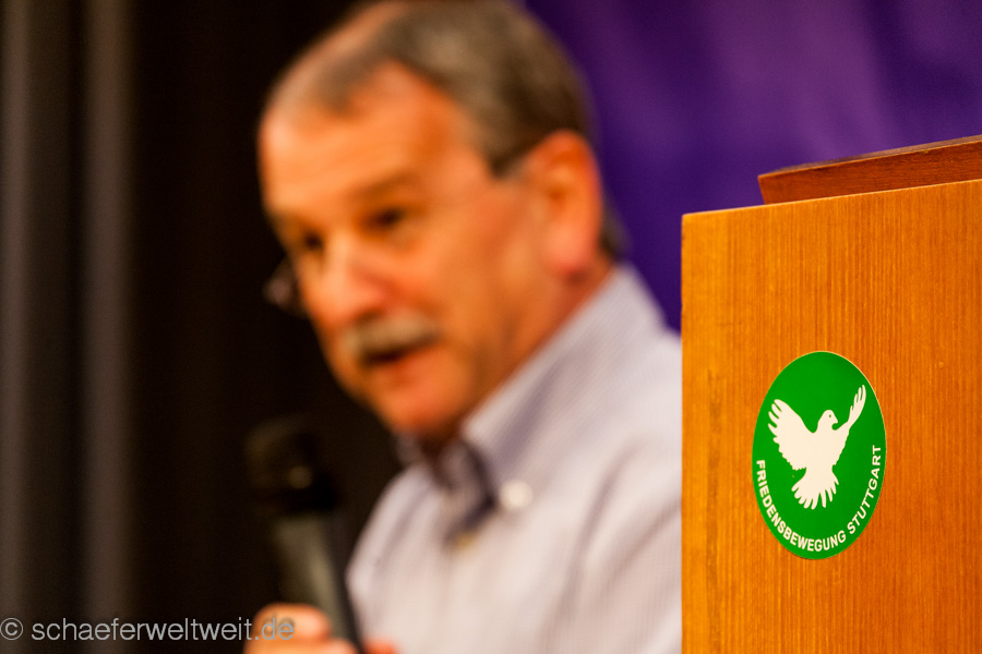 Organisiert von der „Friedensbewegung Stuttgart“ sprach der Journalist Otmar Steinbicker (link) am 23.05.2014 im Stadtteilhaus Mitte, über seine Erfahrungen in militärischer und diplomatischer Sicht, rund um die Militäreinsätze in Afghanistan. Er versuchte dann den Bogen zu den aktuellen Konflikten in der Ukraine zu schlagen. Aus seinen praktischen Erfahrungen versuchte er auch aufzuzeigen, wo seiner Ansicht nach ein gangbarer Weg auch in diesem aktuellen Konflikt liegen könnte.