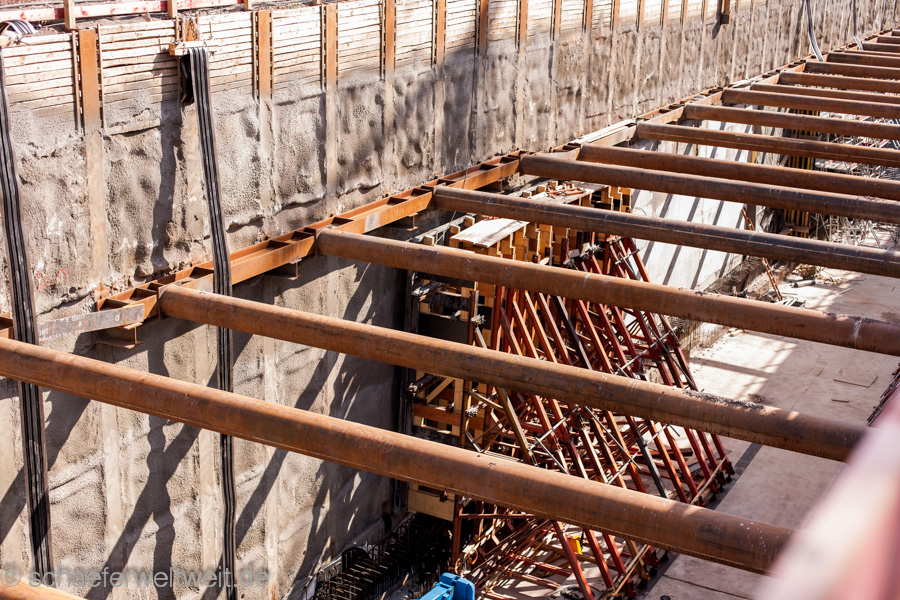 Selbst das angeschlossene Grundwassermanagement kann noch nicht mit besonderen Leitungen glänzen. Die Pumpen laufen bisher mehr oder weniger im Leerlauf, viel Wasser fiel bisher nicht an heißt es. Selbst die Abfahrt der Erde per LKW läuft noch sehr zaghaft und auf Sparflamme. Bohrt man hier ein bisschen nach hört man das die erhofften, aber bisher immer noch nicht realisierten, Transporte per Schiene wohl deutlich billiger werden als die Abfahrt zur Zeit per LKW. Daher scheint hier wohl das abwarten eher Finanzielle Gründe zu haben. In den ersten 2 Stunden des „Tags der offenen Baustelle“ nahmen übrigens gerade einmal 154 Menschen dieses Angebot wahr.