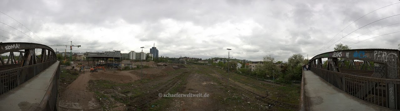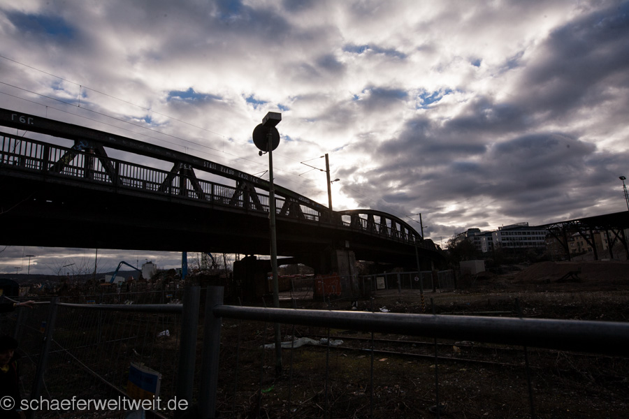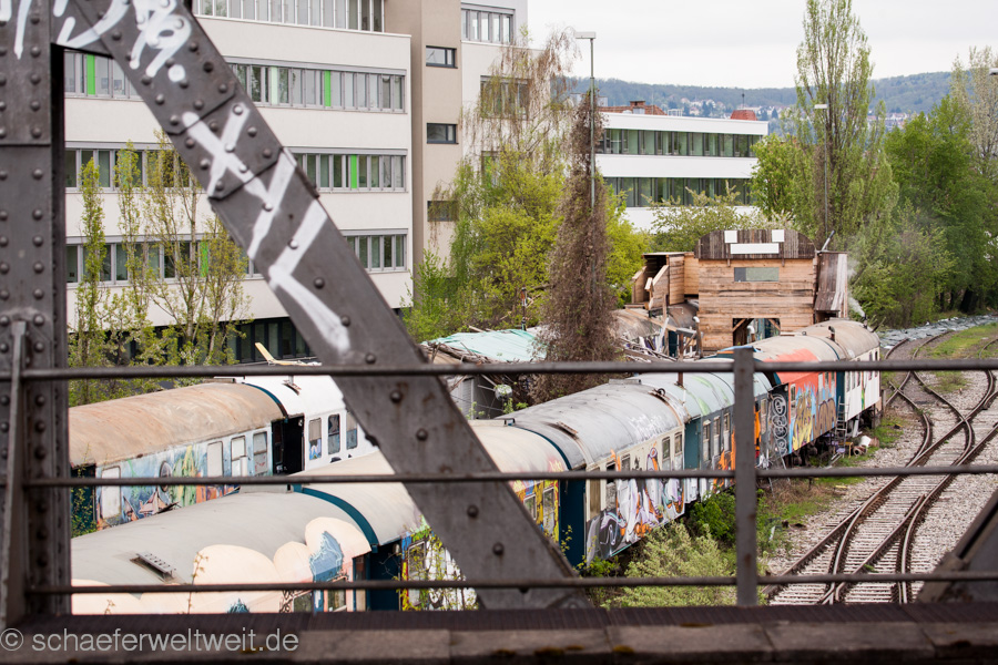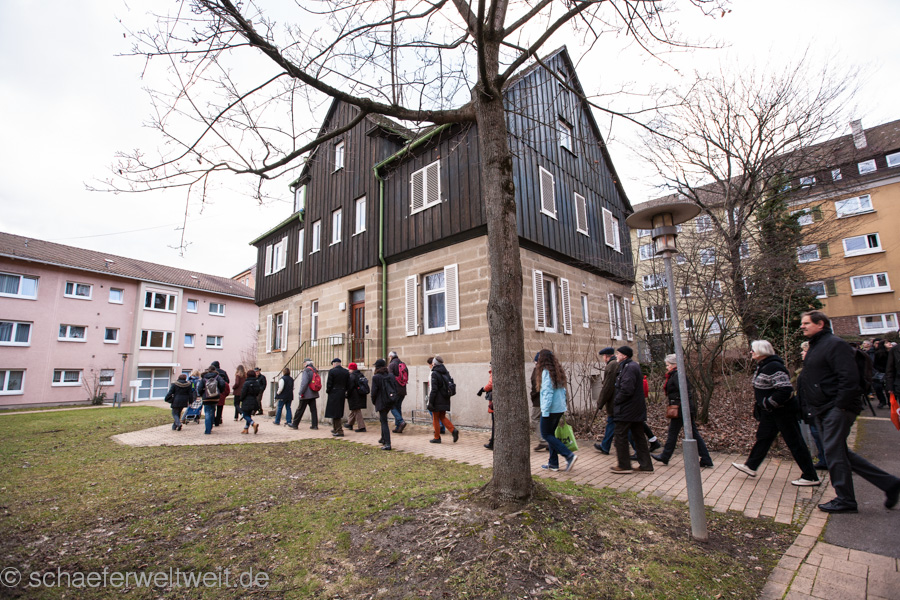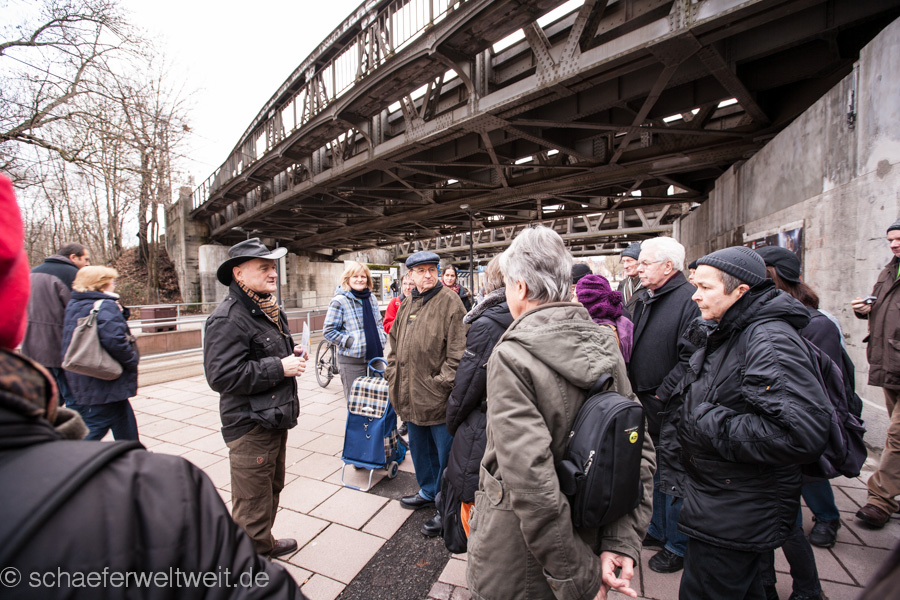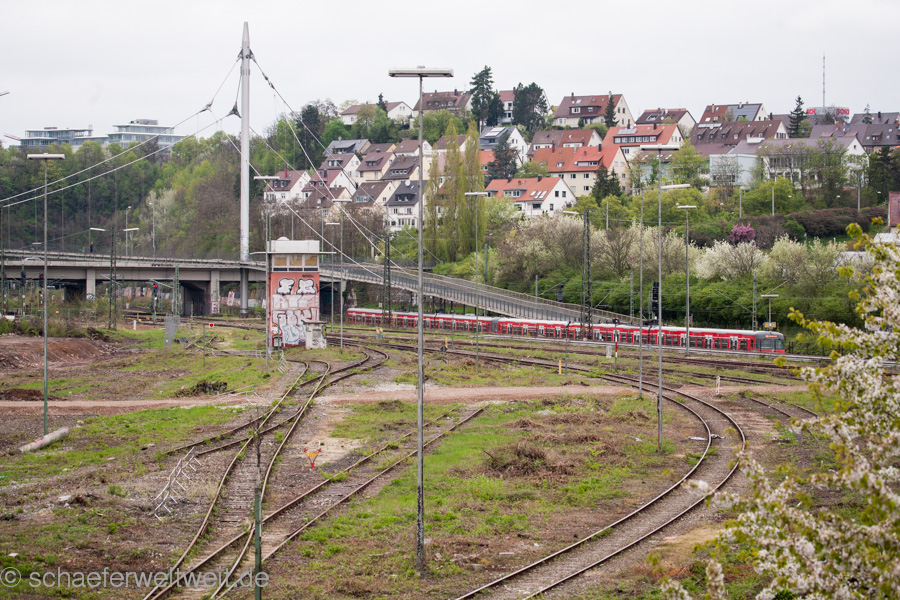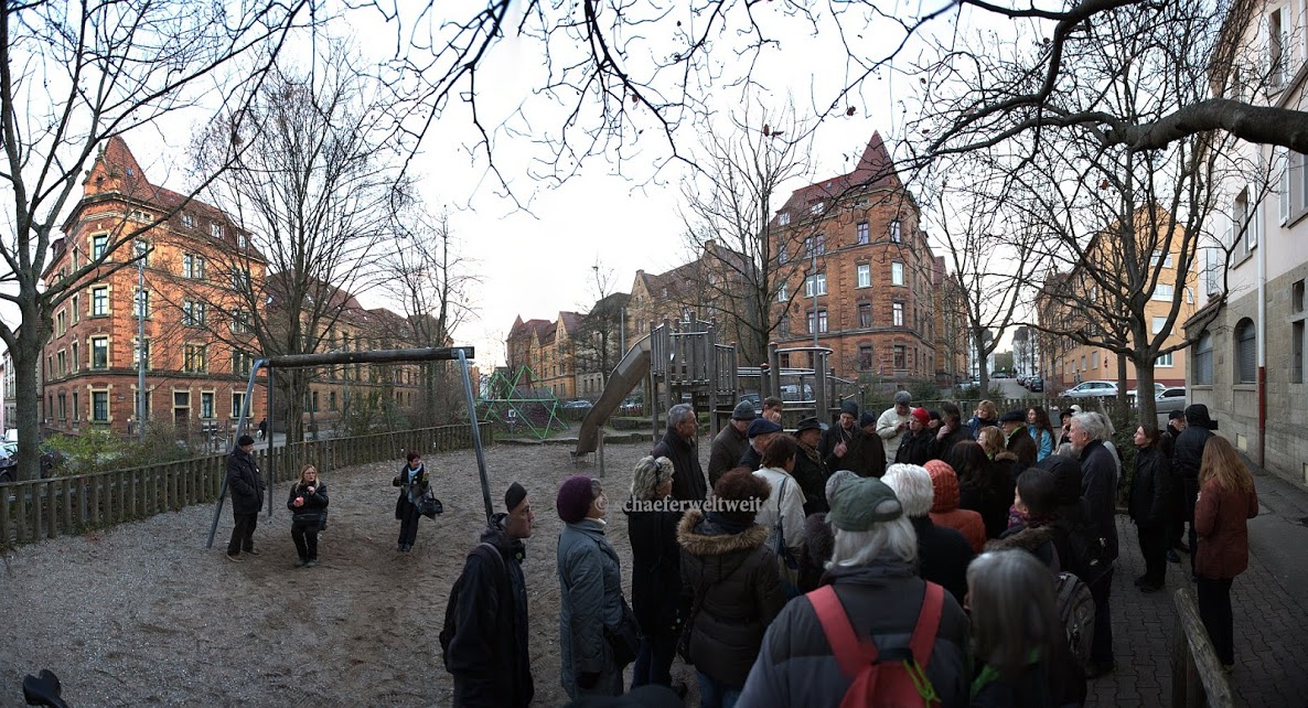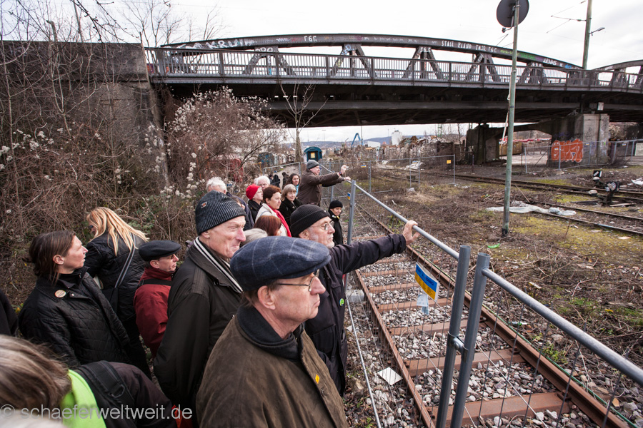 „Gang durchs Dörfle“ nennt Hermann Gökeler seinen kleinen ca. 3 stündigen Rundgang durch das ehemalige Eisenbahner-Wohngebiet rund um den Nordbahnhof in Stuttgart. Ich habe die Führung, zusammen mit ca. 48 Interessierten plus Hund und bei strahlendem Sonnenschein, mit der Kamera begleitet. Hier ein paar Impressionen.