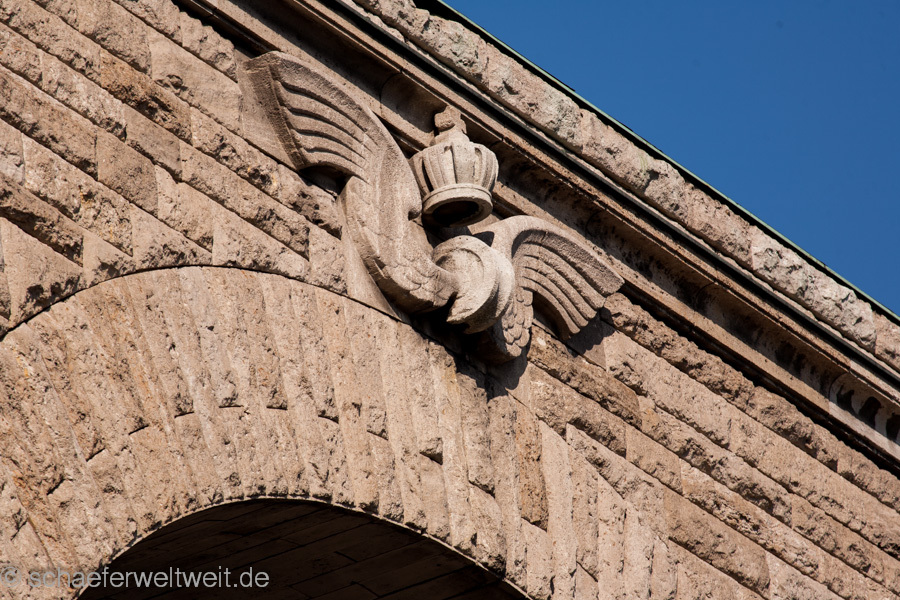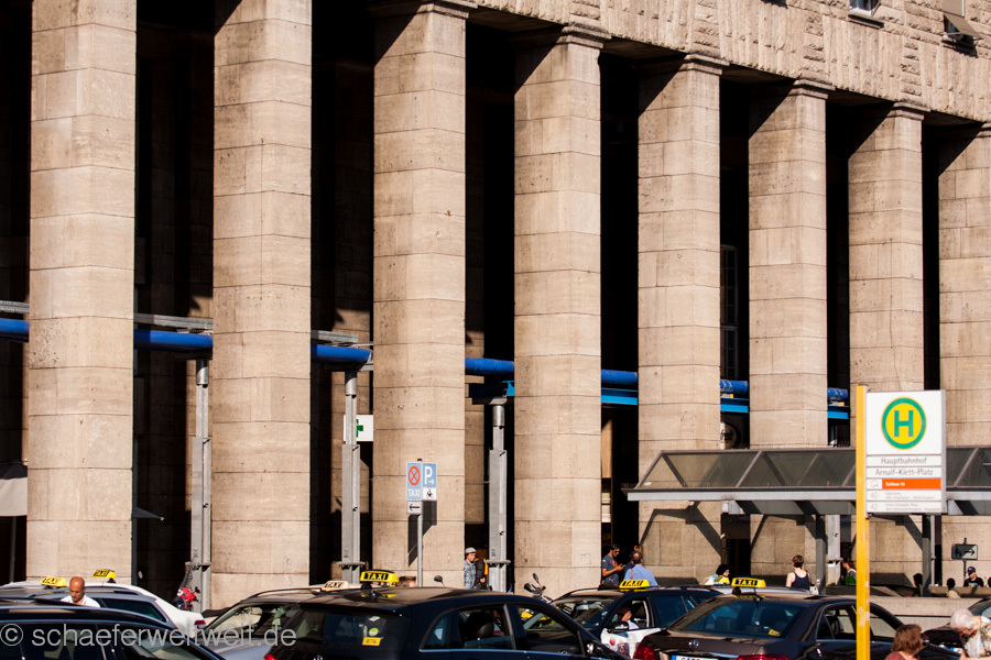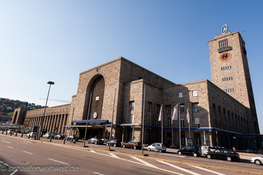 Immer noch imposant zeigt sich die Vorderfront des Stuttgarter Hauptbahnhofs an der Schillerstraße. Die Entscheidung für diesen Standort, fällt 1907 König Wilhelm II. von Württemberg. 1911 entscheidet sich eine Jury für den Entwurf von Architekt Paul Bonatz und seinem Partner Friedrich Eugen Scholer. 1914 geht das Gebäude in den Bau und ist 1928 fertig gestellt. Die lange Bauzeit ist unter anderem den Kriegsjahren geschuldet, in dieser Zeit entwickelt sich der Bau unter anderem auch durch die Empfehlungen vom Berliner Baurat Alexander Rüdell weiter. Sogar die Straßenführung konnte im Rahmen eines städtebaulichen Wettbewerbs verändert und an das Gebäude angepasst werden. Eine sehr schöne Vorstellung dieses Gebäudes und seiner Entwicklung findet sich auf der Seite hauptbahnhof-stuttgart.eu (auch Quelle für die Fakten hier)