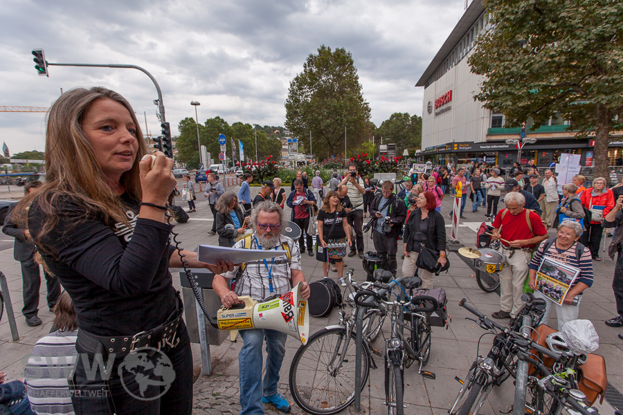 17 Uhr startet die Demonstration an der Mahnwache (Ecke Königstraße / Schillerstraße) mit der Lokomotive Stuttgart und Capella Rebella mit einem Gedenkzug ab 18 Uhr über die Lustruine zum Biergarten, zum Ort des Geschehens.