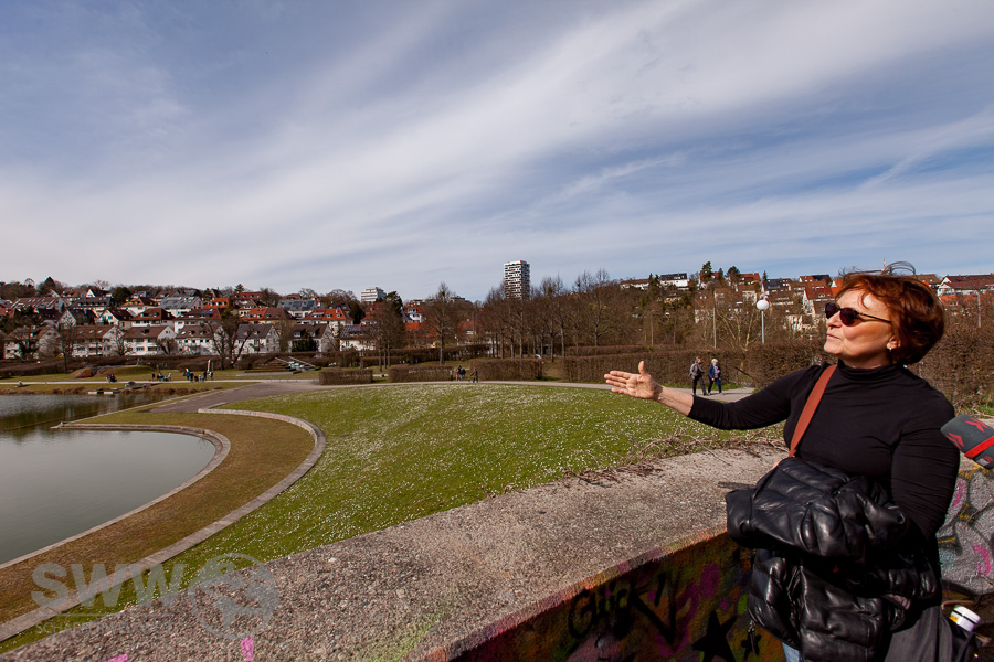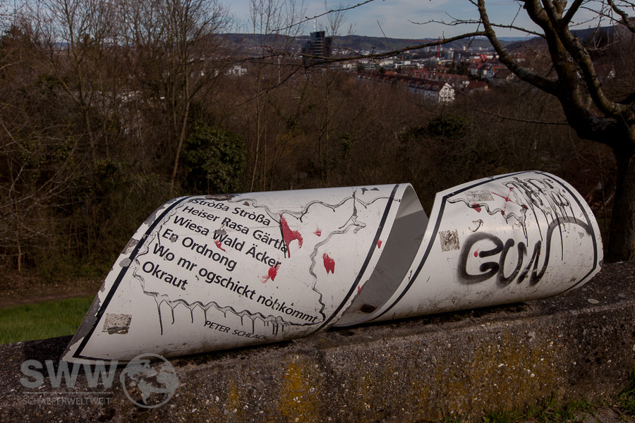 Beim Rundgang zeigte sich der Zustand, der oftmals dem Zerfall preisgegeben Kunstwerke der IGA1993. Die Stadt Stuttgart scheint sich dabei, anders als jetzt beim Heiligtum von herman de vries, ansonsten eher dem passiven Mittel des „Nichtstuns“ zu bedienen. Besonders beim Kunstwerk „Leibfriedscher Garten“ schafft sie es auch eindrucksvoll alles komplett verkommen zu lassen. Was die Stadt beim Sanctuarium grob falsch gemacht hat, hätte sie sich hingegen bei den anderen Kunstwerken zu Herzen nehmen sollen. Gratulation an die Stadt Stuttgart – die Geringschätzung der Kunst im Allgemeinen kann nicht größer sein, wenn zum einen 25 Jahre einzigartiges Pflanzenwachstum und das Vergehen von Zeit zerstört, und zum anderen die Kunst nicht geschätzt, sondern dem Verfall preisgegeben wird.