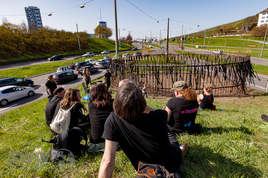 Die „Autogerechte Stadt“ ist nicht zuletzt in Stuttgart der Hauptstadt von Daimler und Porsche an allen Ecken und Enden zu spüren. Das Hauptanliegen von „critical mass“ ist daher an dieser Hauptausrichtung des Öffentlichen Raumes zu kratzen. Dabei handelt es sich um eine weltweit bekannte und verbreitete Aktionsform welche seit Jahren (seit 1992) in Großstädten stattfindet. Unmotorisierte Fahrzeuge (zumeist Fahrräder) treffen sich und fordnern ihren Platz im Straßenraum ein. In Deutschland gilt eine Gruppe von Fahrradfahrer ab 15 Fahrern als „Verband“ und damit gilt hier automatisch das selbe Recht wie Beispielsweise bei einem Sattelzug. Sprich wenn bei diesem Verband eine Ampel während der Überquerung einer Kreuzung auf Rot schaltet darf das Fahrzeug / der Verband weiter die Kreuzung überqueren. Für Radfahrer eines Verbandes gilt zudem nicht die Radwegbenutzungspflicht und sie dürfen auf der Fahrbahn zu zweit nebeneinander fahren.