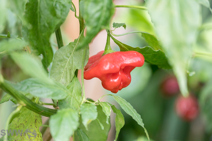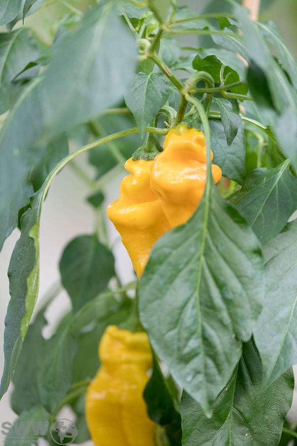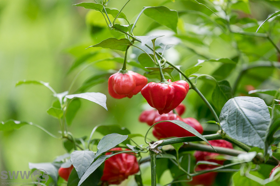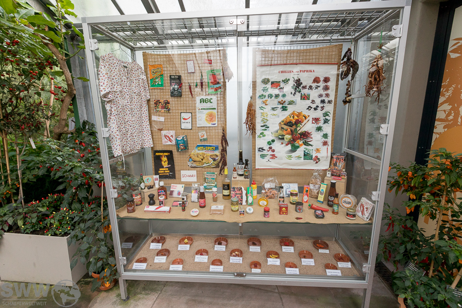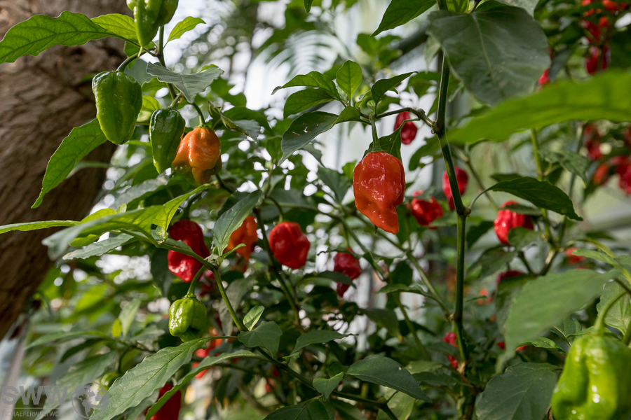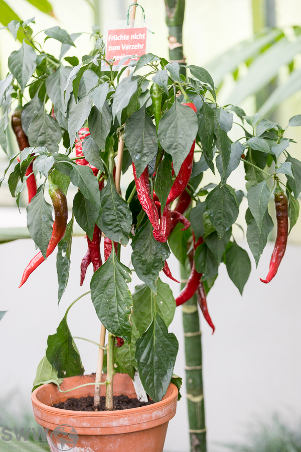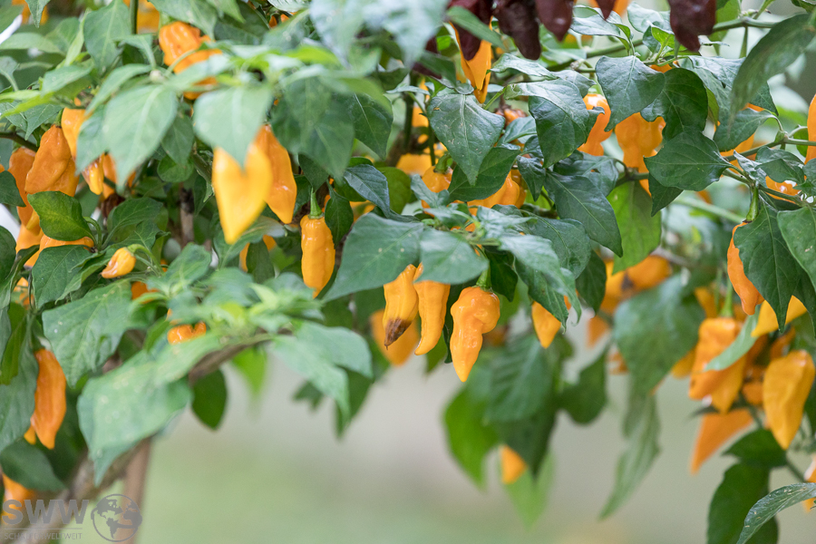 Neben diesem kleinen süßen Highlight bietet sich zurzeit auch die große Chilipflanzenausstellung mit ihren scharfen Highlights zur Besichtigung an. Hier stehen aktuell zahlreiche Sorten im reifen Fruchtzustand und zeigen in schillerndsten Farben die große Vielfalt dieser scharfen Beeren.