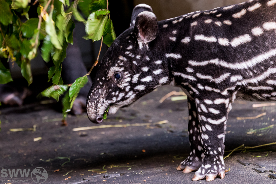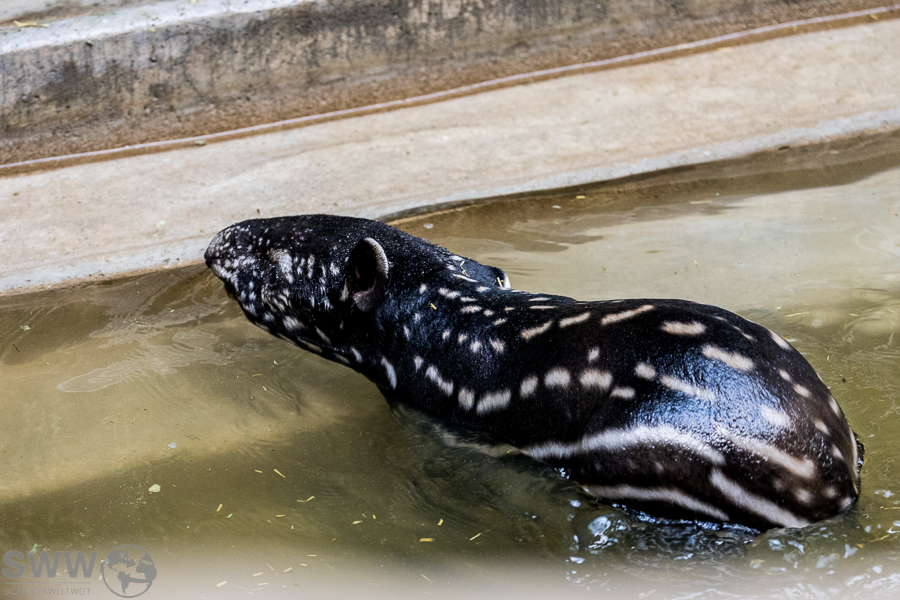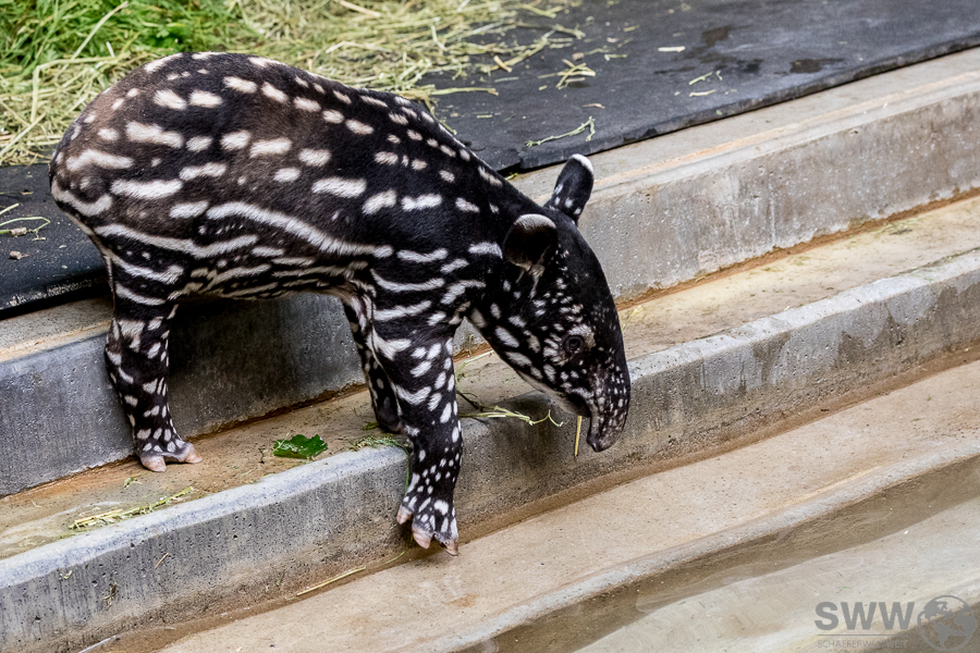 Das erste Mal seit 1979 gibt es Nachwuchs bei den Schabrackentapiren in der Stuttgarter Wilhelma. Wie man in der Pressemeldung des Zoos erfahren kann, ist dies nicht nur in der Wilhelma aussergewöhnlich sondern auch in der asiatischen Heimat. Im gleiche Zeitraum dieser 43 Jahre ging der Wildbestand um rund der Hälfte zurück. Seit dem 10. August ist dieser kleine Wirbelwind nun auch im Aussenbereich des Geheges zu besuchen.
