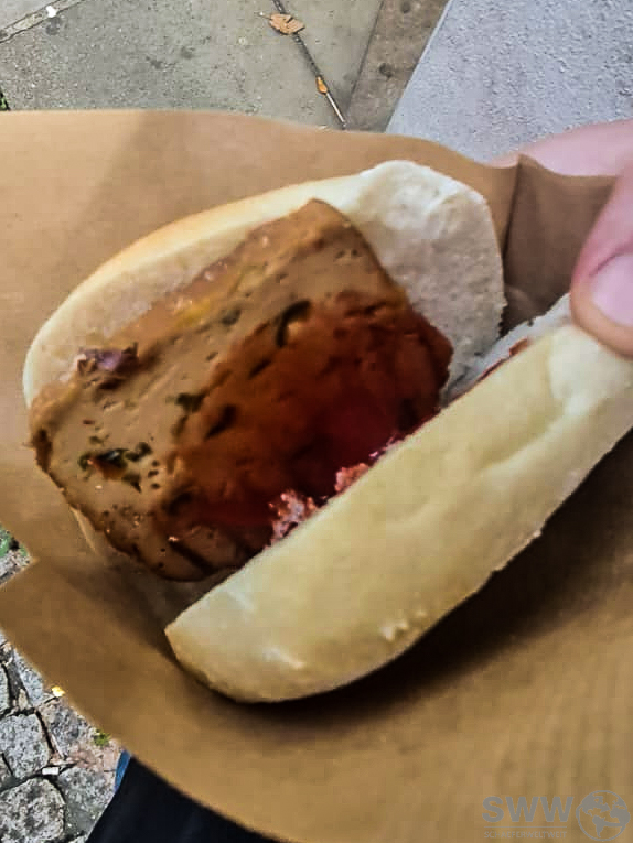 Vor Ort kann man verschiedene Produkte probieren, z. B. ein Fleischkäsebrötchen, das bei meinem Besuch allerdings leider recht kalt war. Grundsätzlich schmeckten die getesteten Produkte jedoch sehr gut und boten interessante, kreative Geschmacksvarianten.