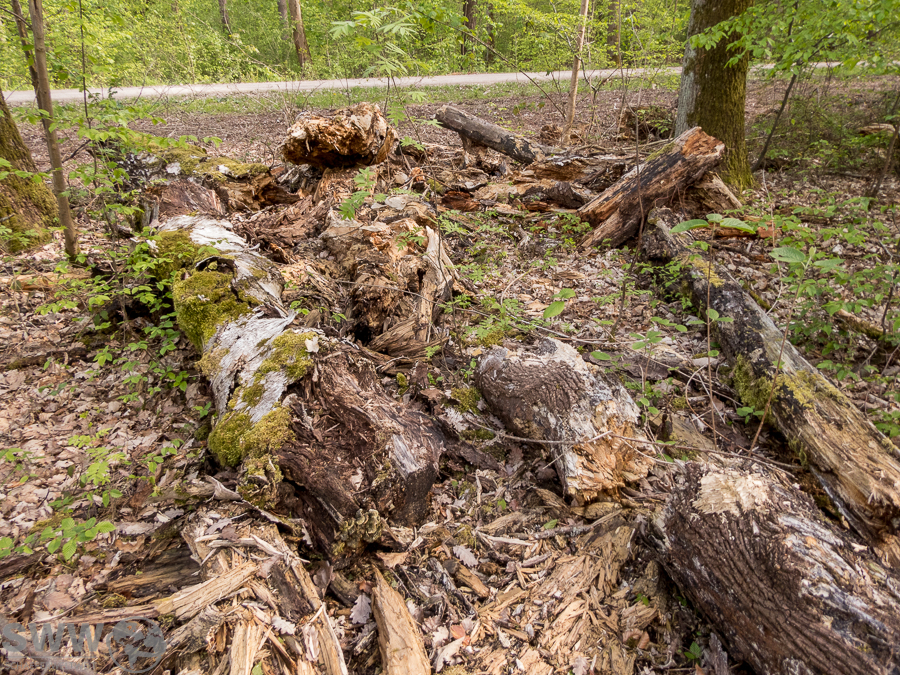 Nach der Abholzung der Bäume im Mittleren Schlossgarten im Jahr 2012 wurden viele davon als „Totholz“ in den Feuerbacher Wald geworfen. (siehe Archivbilder Link) Nun im Jahr 2021 liegen sie verteilt im Wald. Hier einige aktuellen Bilder.