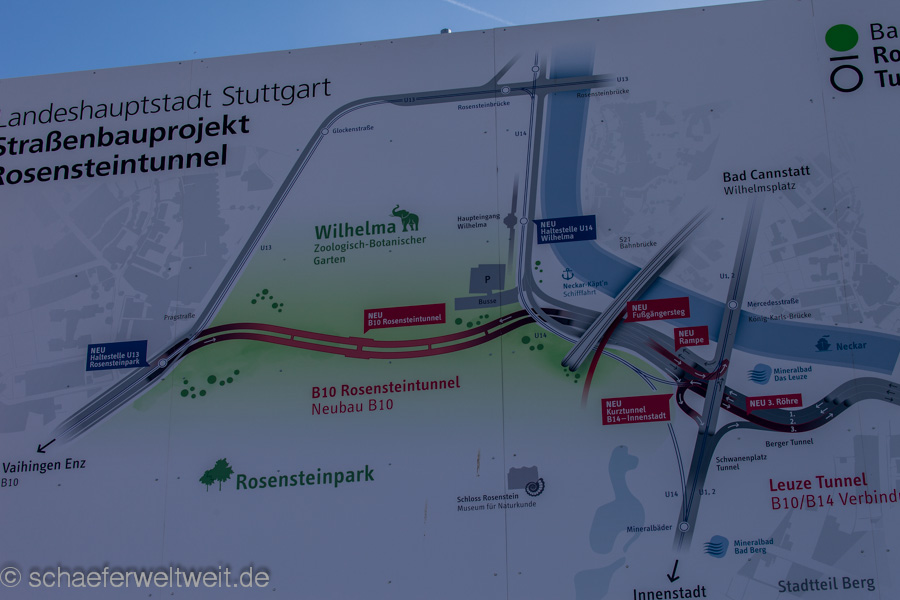 von Wolfgang Rüter Es ist eine Schande, wie das einst liebens- und lebenswerte Stuttgart immer mehr zerstört wird. Nach der Zerstörung des Mittleren Schlossgartens und der Rodung eines 200 Jahre alten Baumbestands kommt jetzt der als FFH Landschaftsschutzgebiet ausgewiesene Rosensteinpark neben vielen anderen S21-Baustellen dran. Eine Fotoreportage, beginnend bei den Mineralbädern und der U14 Stadtbahnverlegung, den gefährdeten Grünflächen entlang des geplanten Rosenstein-Straßen-Tunnels von Ost nach West, und weiter durch den Rosensteinpark zur Ehmannstraße und dem Abstellbahnhof, wo sich auch das GWM3 befindet und Eingriffe in das Landschaftsschutzgebiet Rosensteinpark weiterlesen