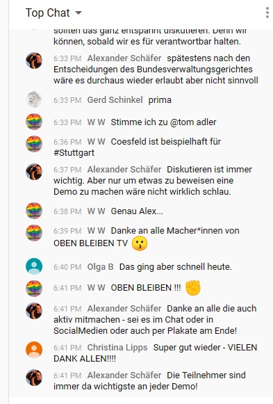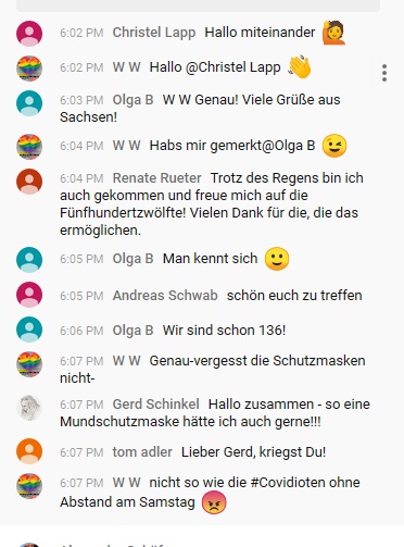 Nichts desto trotz dokumentiere ich so gut es geht wie immer die Teilnehmer, so ich sie während der Demo online finde.