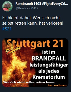 Wie viele meiner jahrelangen Besucher.innen hier fährst du wahrscheinlich mit dem Öffentlichen Nahverkehr daher: Geh nicht in Ballungzentren wie die Stuttgarter Innenstadt wenn du es vermeiden kannst! Bleib lieber Zuhause. Schlimmer als eine „leere Demo“ ist wenn du deshalb ernsthaft krank wirst. Dieses Projekt ist kein einziges Menschenleben wert.