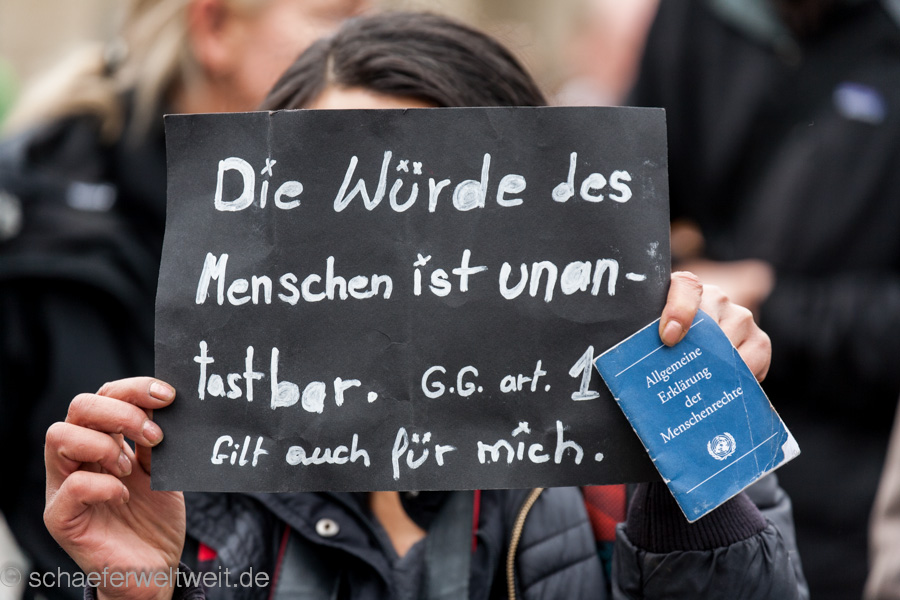 Kurz vor der Demo wurde zeitweise ein Infostand der AFD auf dem Schloßplatz unter Polizeischutz gestellt, nach kurzer Zeit gab dieser aber auf und zog unter Polizeischutz und Sprechchören „Rassisten raus aus Stuttgart“ ab.
