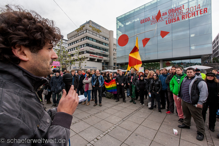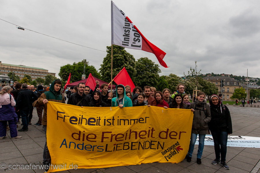 Unter dem Motto „Vielfalt statt Einfalt – Akzeptanz aller Geschlechter und Liebesformen“ veranstaltet „Die Linksjugend [‘solid] Baden-Württemberg“ sowie weitere Organisationen am 3. Mai eine Kundgebung für die Akzeptanz aller Geschlechter und Liebesformen. Sie fordern damit die Landesregierung dazu auf, nicht vor den rechtspopulistischen Protesten einzuknicken, sondern (Regenbogen-)Flagge zu zeigen. Quelle und Veranstalter Informationen zur Demonstration