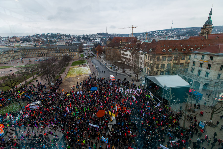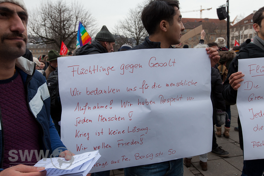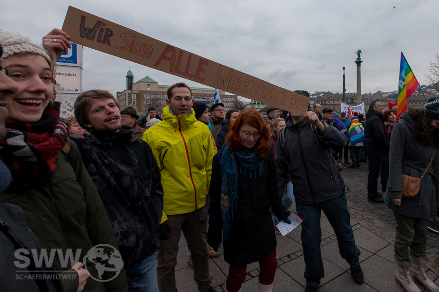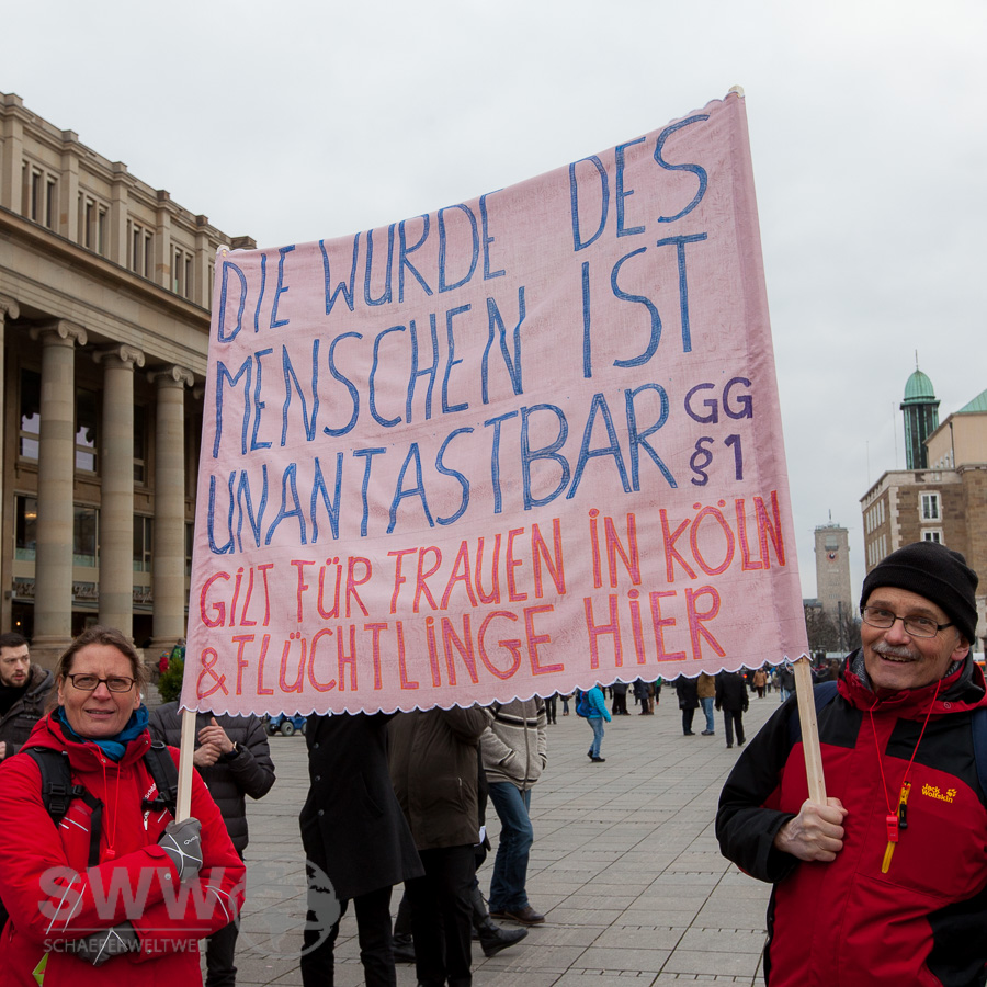 In Stuttgart rief ein Bündnis aus 81 Organisationen unter dem Schirm des Deutschen Gewerkschaftsbundes (DGB) zur Kundgebung „halt!zusammen Baden-Württemberg gegen Rassismus und Gewalt“ auf und viele Bürger folgten. Mit der Kundgebung auf dem Schlossplatz zeigten mehrere tausend Bürger und zahlreiche Stuttgarter Organisationen und Vereine ihren Willen für diese Ziele aufzustehen.