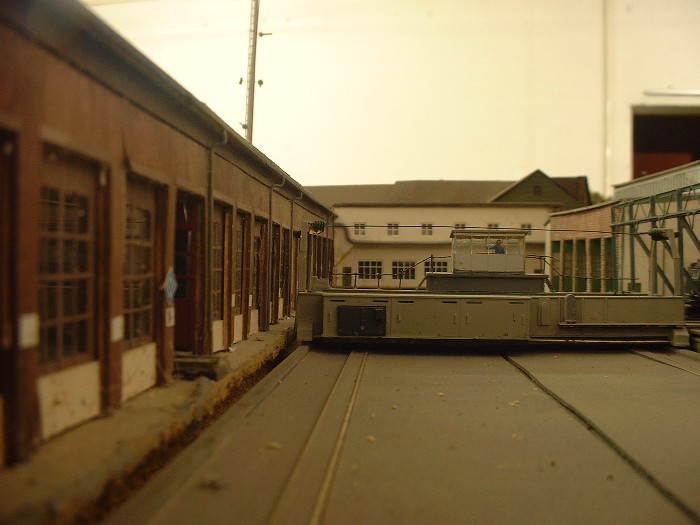 Unten: Das Bw wird von der Rosensteinpark her von einer Schiebebühne her bedient. Die Ansicht zeigt die Bühne von der Werkstattseite her gesehen.
