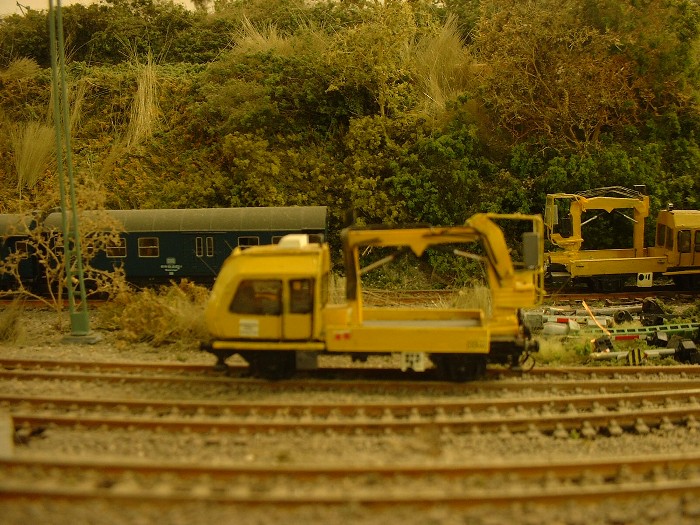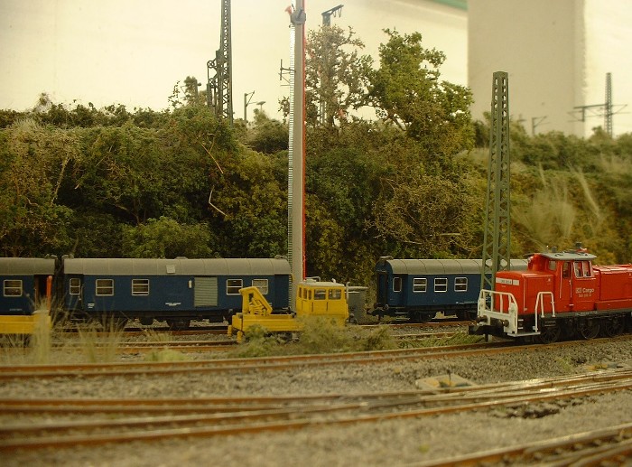 Unten: Die Gleise hinter dem Verbindungsgleis 501. Sie gehören zum Wasserhaus. ( Warum das so heißt ? - weiss ich nimmer ). Heute werden oft Bauzüge und SKL`s dort abgestellt. Der Betonmast dient dem Zugfunk.