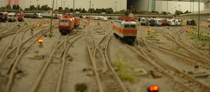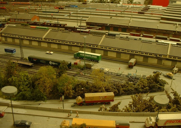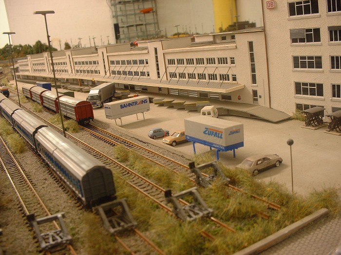 Der Güterbahnhof ist längst Geschichte. Er wurde zu Gunstem dem Projekt Stuttgart 21 schon vor Jahren aufgegeben. Er wurde total abgerissen. So dieser nur noch im Modell zu sehn. Vielleicht ist das auch schon Stadtgeschichte. Wenn man überlegt, wieviel Speditionen dort ansäßig waren...sogar ein Containerterminal gab es dort. Heute steht dort die Landeszentralbank. Naja im Modell ist die Welt halt noch heil...